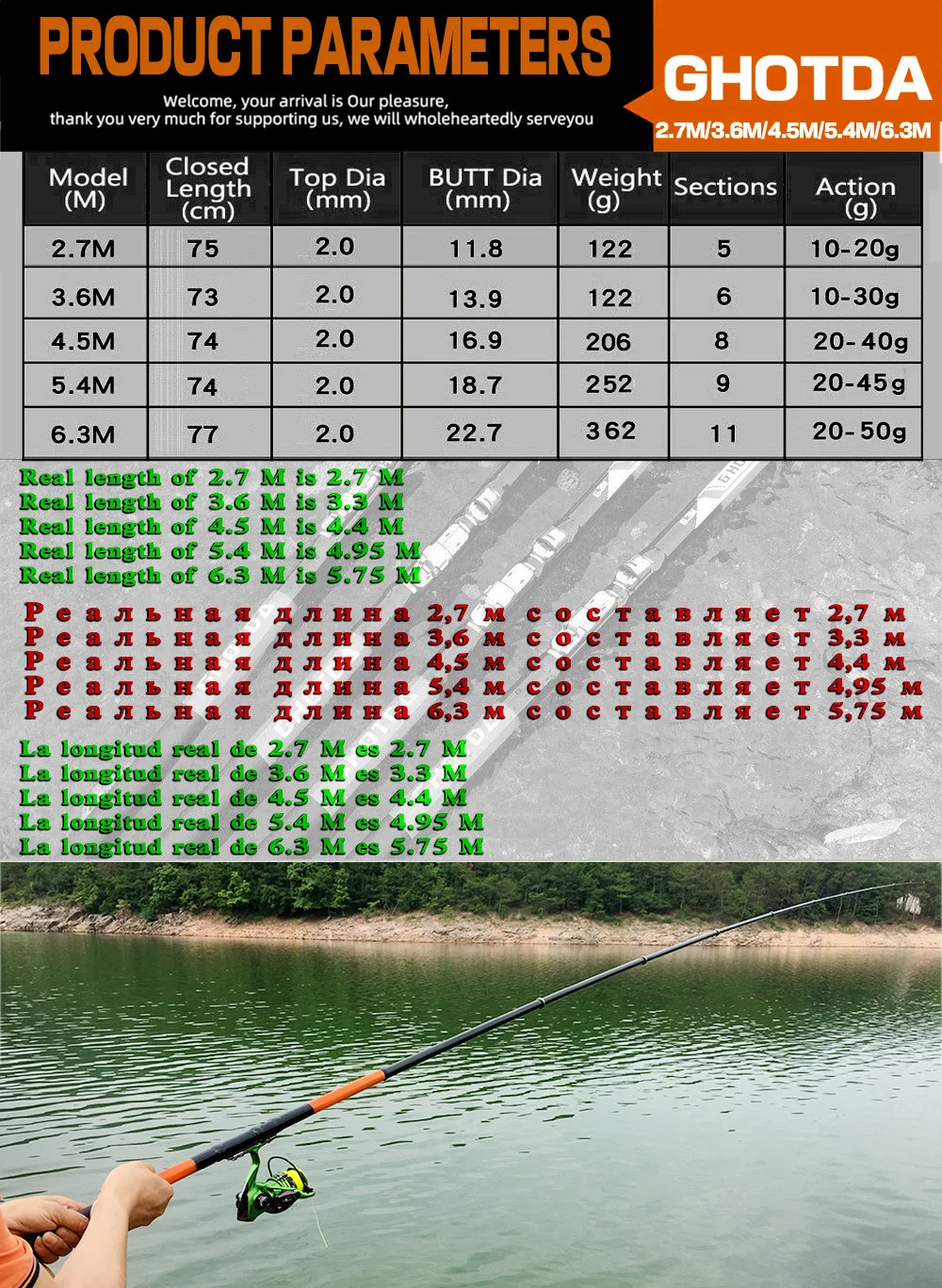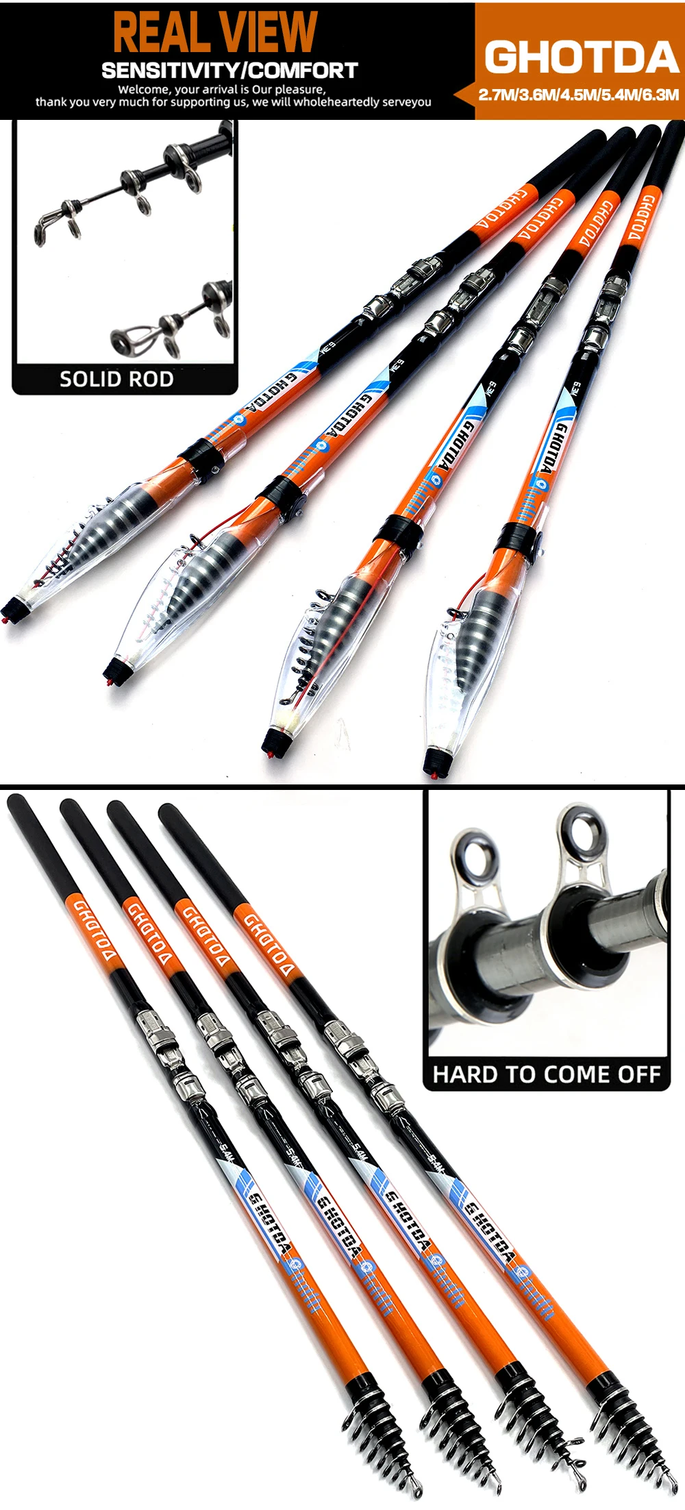 Caña de pescar en roca de fibra de carbono completa 2,7 M/3,6 M/4,5 M/5,4 M/6,3 M