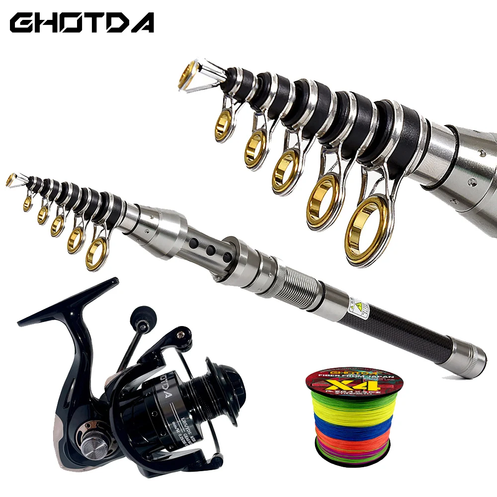 1. Esta caña de pescar está hecha de fibra de carbono, fuerte y duradera.