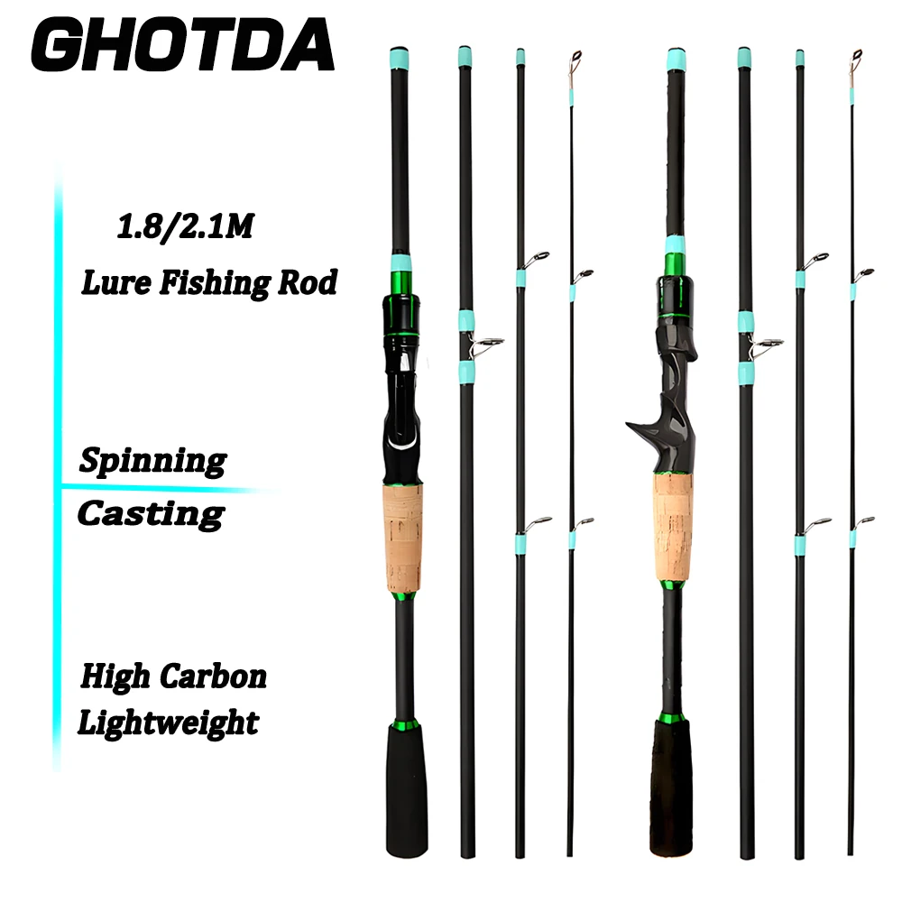 Caña de pescar giratoria de fundición Ghotda, caña de pescar de viaje de carbono ultraligera de 1,8/2,1m, caña de pescar Baitcasting con mango de EVA de 4/5 secciones