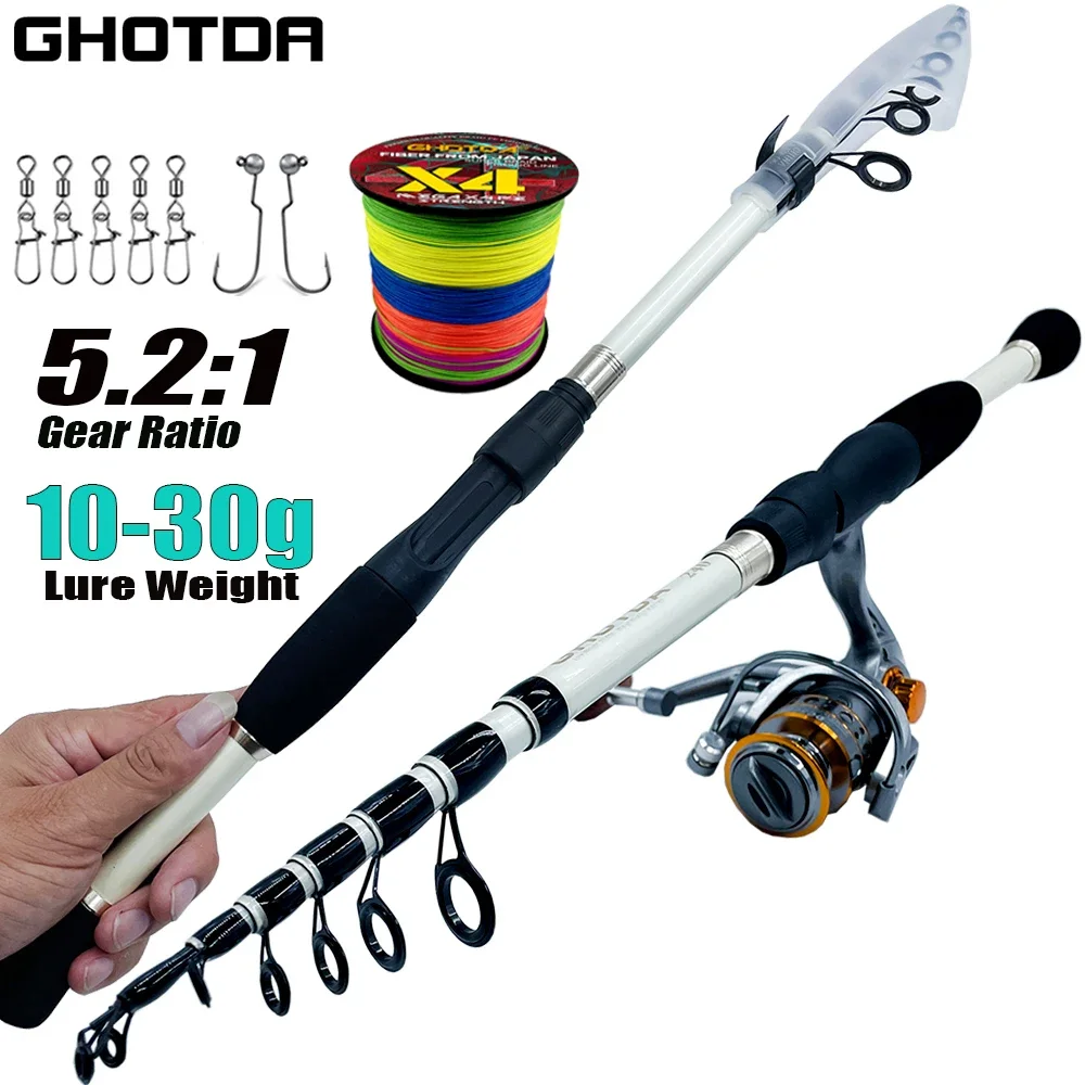 GHOTDA caña de pescar y carrete Combo Set 1,6-2,4 m fibra de carbono señuelo telescópico caña de pescar y 5,2: 1 relación de engranaje carrete de pesca giratorio carpa Pesca