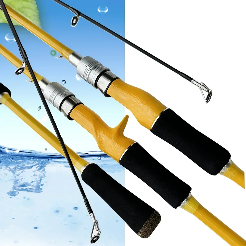 PARÁMETROLongitud del modelo: 1,65 M/1,80 MLongitud cerrada: 87cm/ 94cmSecciones: 2Potencia: MLMaterial: fibra de carbonoPeso del cebo: 3G-20gMango: fundición (con gancho)/hilado (sin gancho)Color: AmarilloCaracterísticasPunta de varilla gruesaLa tonalidad es sensible, atrapa peces rápidamente, no es fácil de romper.
