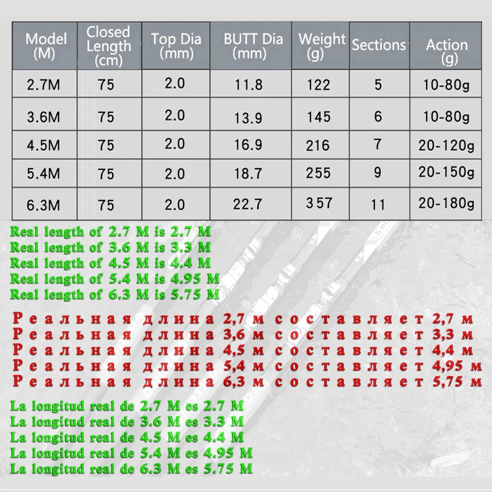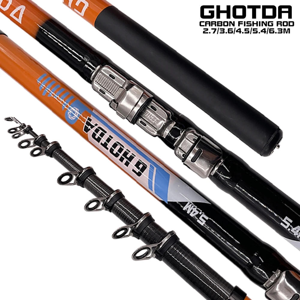 Comprar GHOTDA-caña de pescar telescópica, caña de pescar de fibra de carbono 100%, 2,7/3,6/4,5/5,4/6,3 M