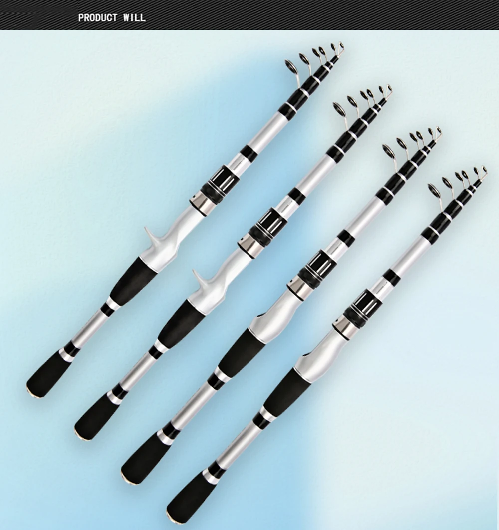 Tipo de caña: caña de pescar con señuelo telescópico Tonalidad: Duro Tamaño: 1,5/1,8/2,1/2,4 M Color: plata