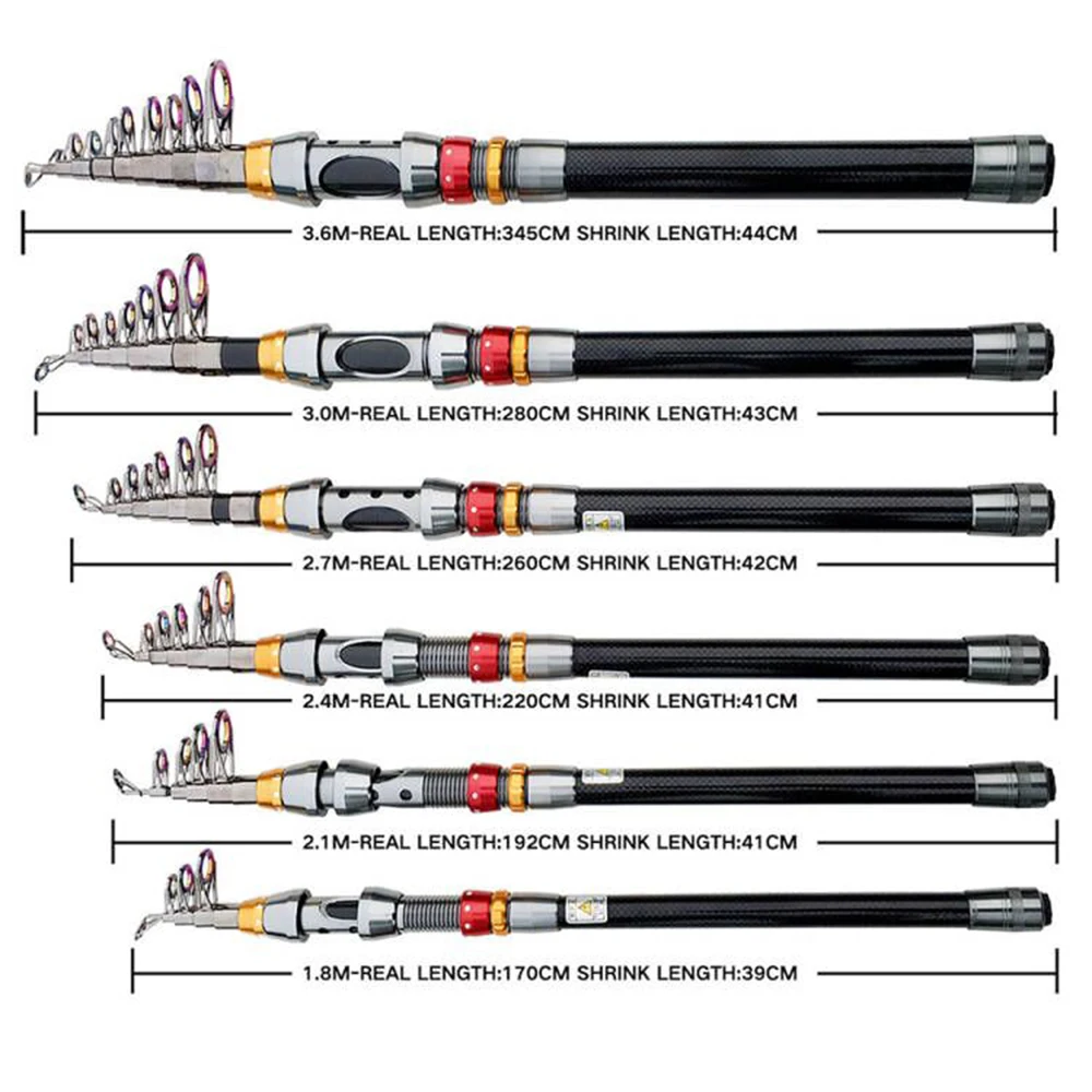 Caña de pescar de carbono telescópica dura GHOTDA 1,8-3,6 m y relación de engranaje 5,2: 1 carrete de pesca giratorio de alta velocidad Combo de pesca de agua de marTabla de tallas