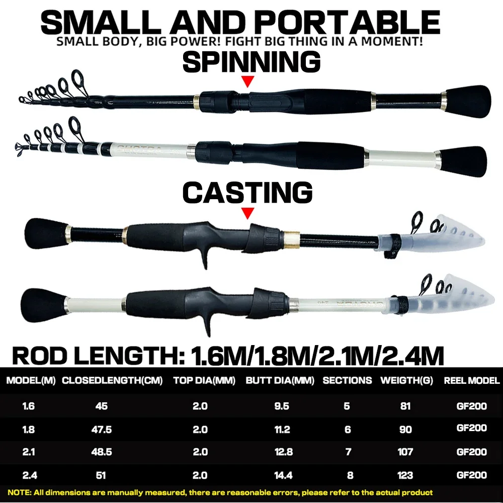GHOTDA Spinning/Casting caña de pescar con kit de carrete