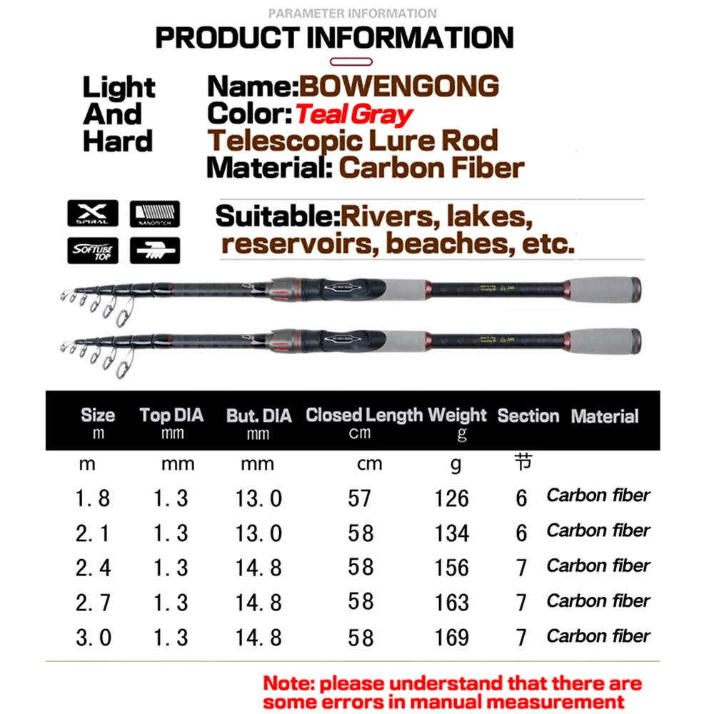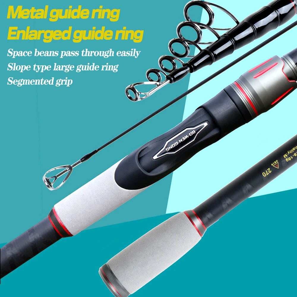 Ghotda-caña de pescar telescópica de fibra de carbono, caña giratoria de fundición larga con anillos de guía de ojo grande, potencia de Acción m, 1,8-3,0 M