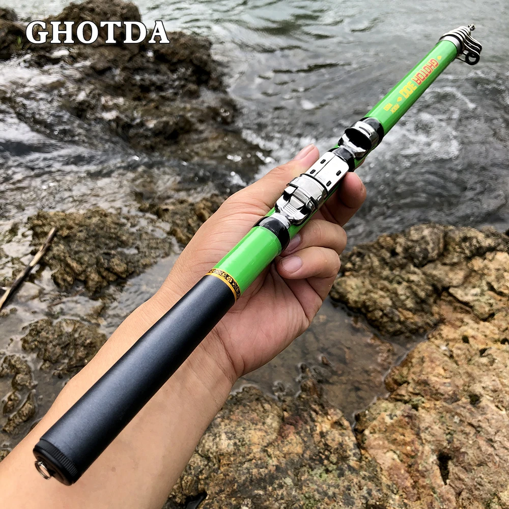 Caña De pescar telescópica GHOTDA, caña De pescar En roca De fibra De carbono, Mini Cañas giratorias 1,5 M 1,8 M 2,1 M 2,4 M 2,7 M Caña De Pescar