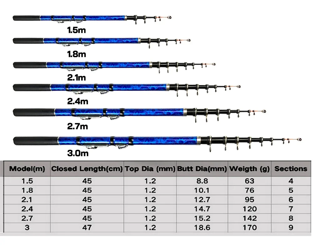 Caña de pescar GHOTDA 3M 2.7M 2,4M 2.1M 1,8M 1.5M, caña de pescar telescópica portátil de fibra de carbono, caña de viaje ultraligera