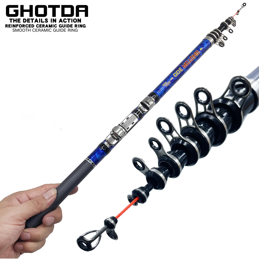 Caña de pescar GHOTDA 3M 2.7M 2,4M 2.1M 1,8M 1.5M, caña de pescar telescópica portátil de fibra de carbono, caña de viaje ultraligera