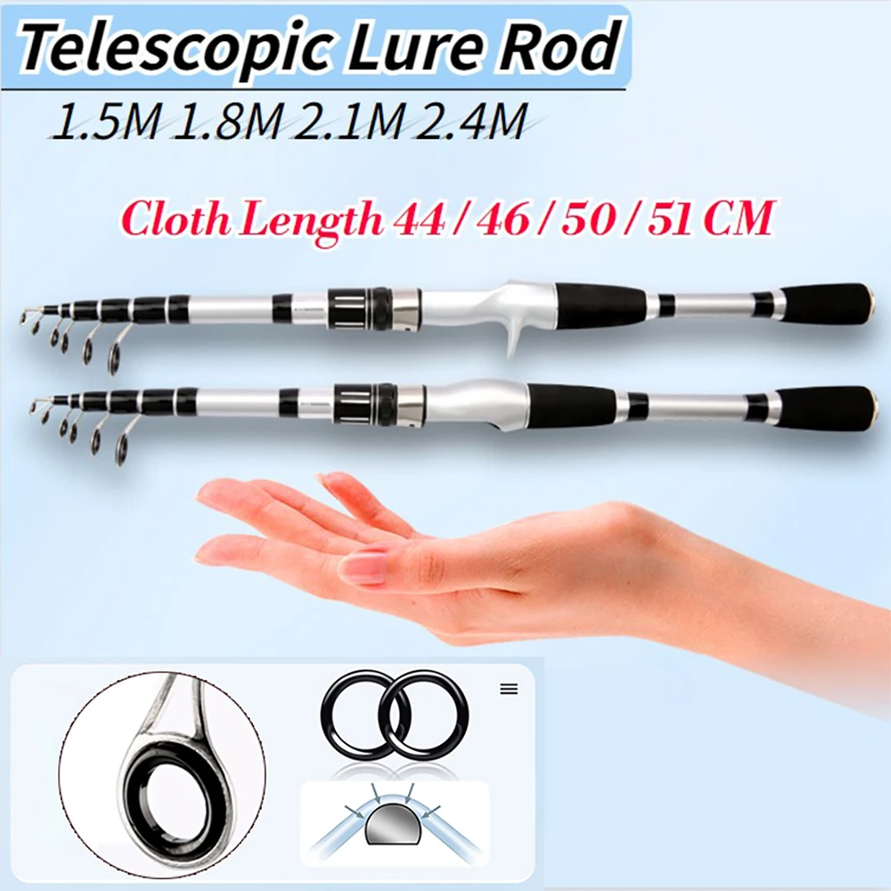GHOTDA-caña de pescar telescópica, ultraligera, dura, portátil, de fundición larga, de fibra de carbono, 1,5-2,4 m, de acción rápida