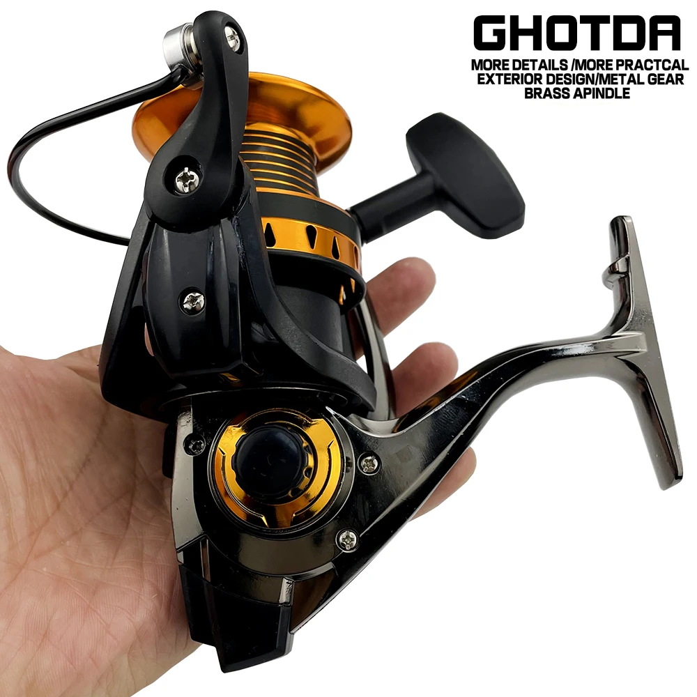 Marca GHOTDA 4000-8000 carrete giratorio de Surf de alambre de Metal relación de engranaje de alta velocidad brazo de roca de Metal carrete de pesca de agua salada