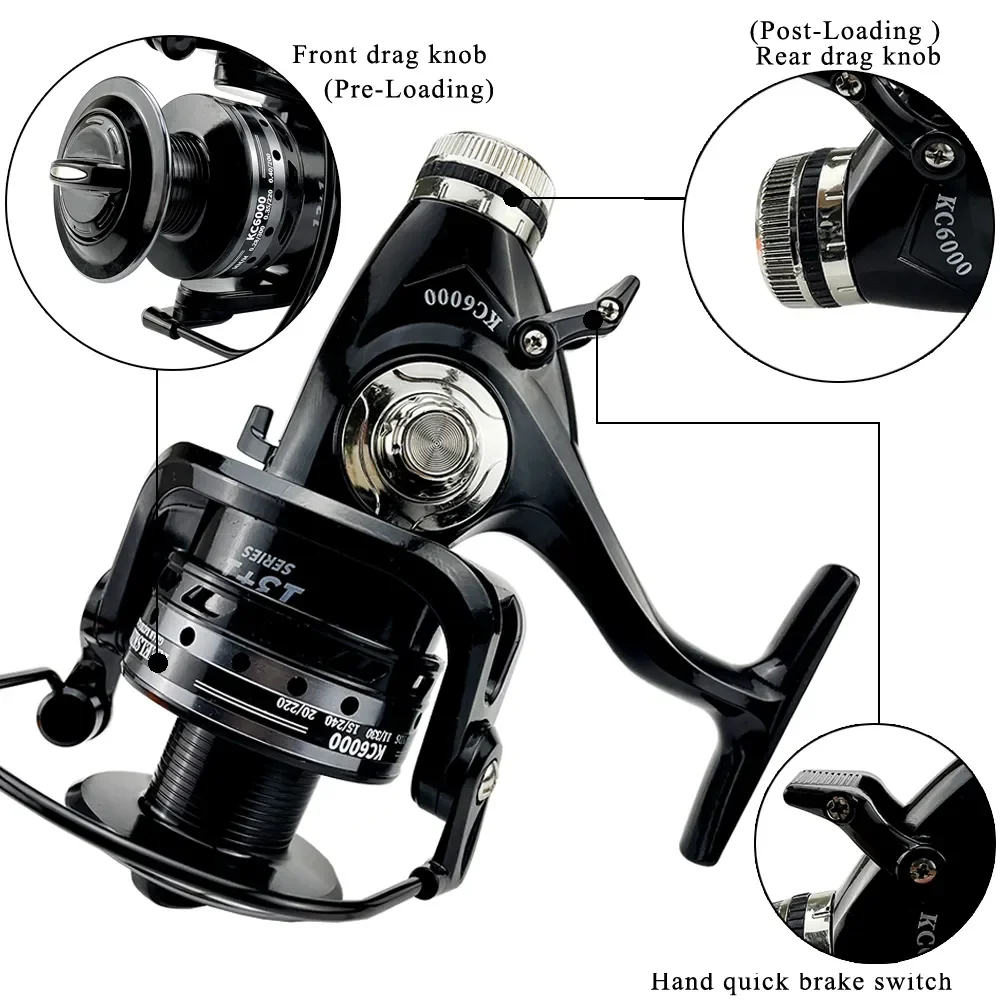 Ghotda-carrete giratorio con doble freno para pesca de carpa, accesorio con Ratio de engranaje 5,2: 1, Serie 3000-6000, adelante/poste, agua dulce/salada