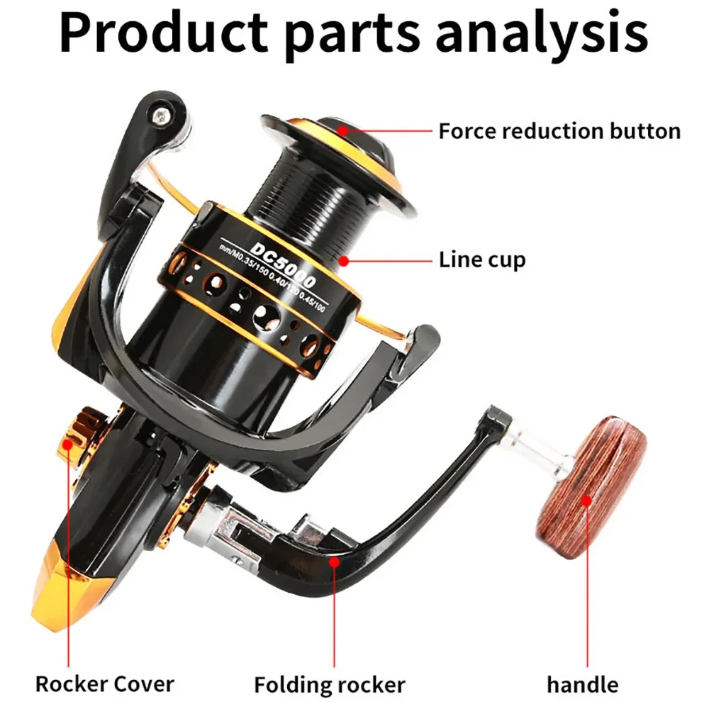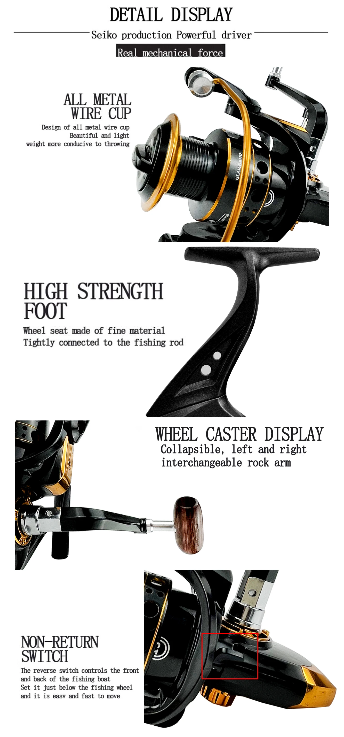 2, copa de alambre de metal, fuerte y duradera, sin daños en la línea de pesca3. Brazo de roca intercambiable izquierdo y derecho4. La relación de engranaje de Alta Velocidad proporciona un rendimiento de rotación más rápido5. Bobina de línea de tiro de metal más gruesa, duradera, no se deforma fácilmente.