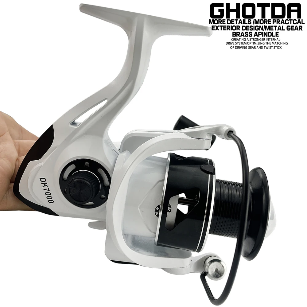 GHOTDA, carrete de pesca de carpa deportiva al aire libre de Color blanco, carrete de pesca de freno trasero de Metal, carrete de pesca de agua dulce de mar 2000-7000Series