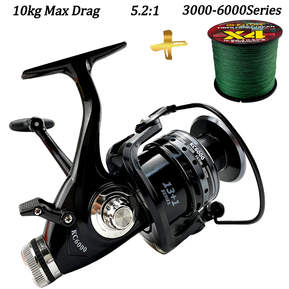 GHOTDA-carrete de pesca con diseño de freno doble, alimentador de pesca de carpa superfuerte, taza de alambre de Metal, intercambio de manos izquierda y derecha, 5,2: 1, 3000-6000
