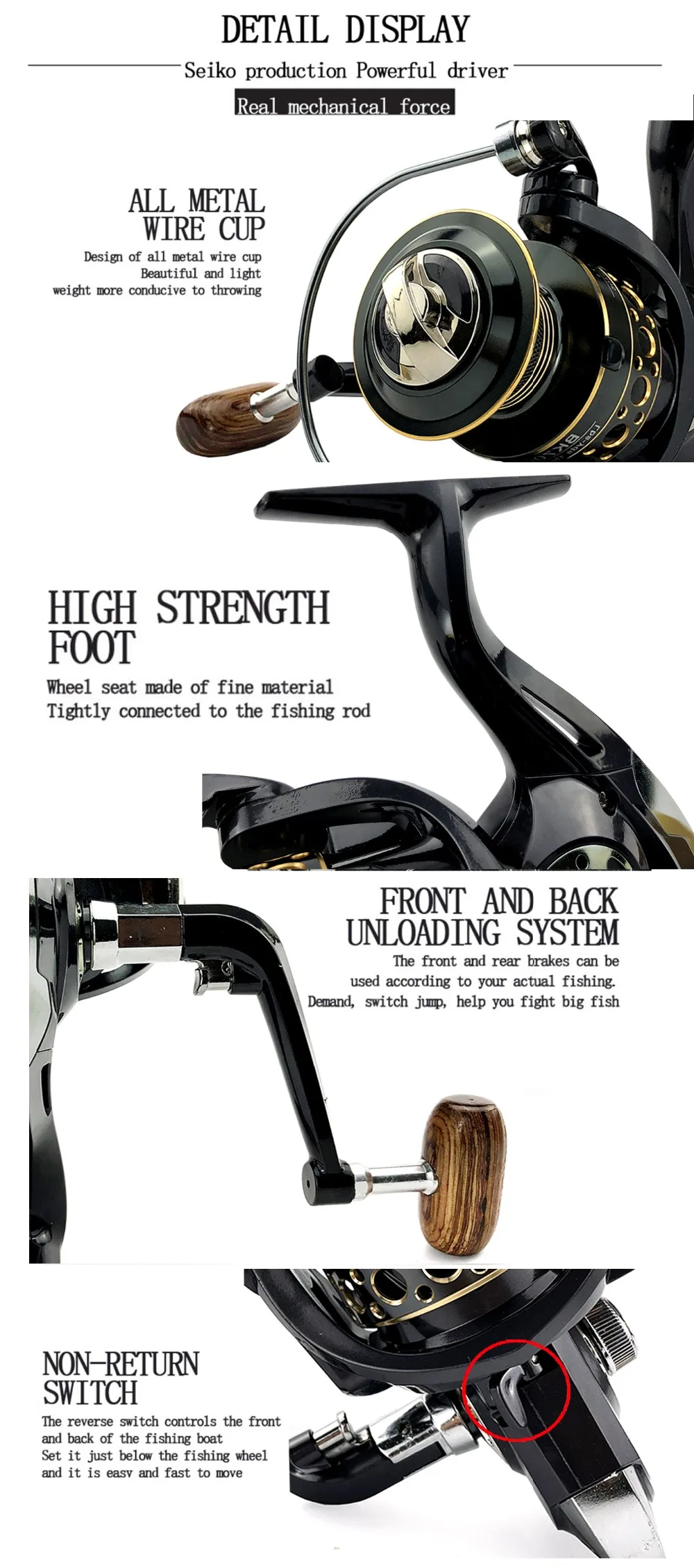 Carrete de pesca giratorio con rodamiento de acero inoxidable GHOTDA 2000-7000 carrete de Metal carrete de pesca aparejos de pesca