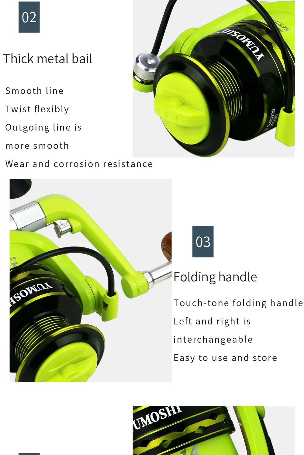 * Con alarma de pesca. Cuando un pez muerda el cebo, arrastre la línea y el carrete, y se emitirá un sonido "da-da-da" dentro del carrete.
