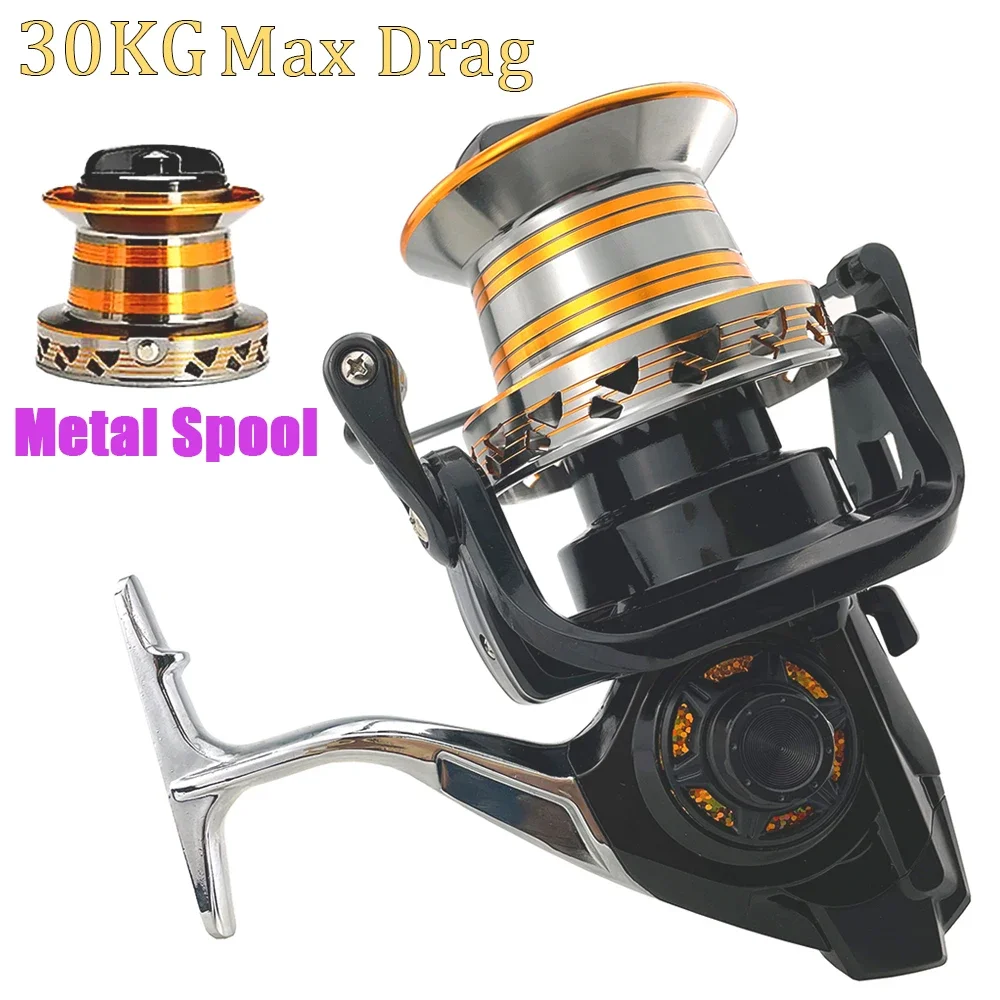 GHOTDA carrete de pesca giratorio Jigging agua salada DH9000 10000 12000 serie rueda de pesca de fundición lejana carrete profundo arrastre de Metal 30KG