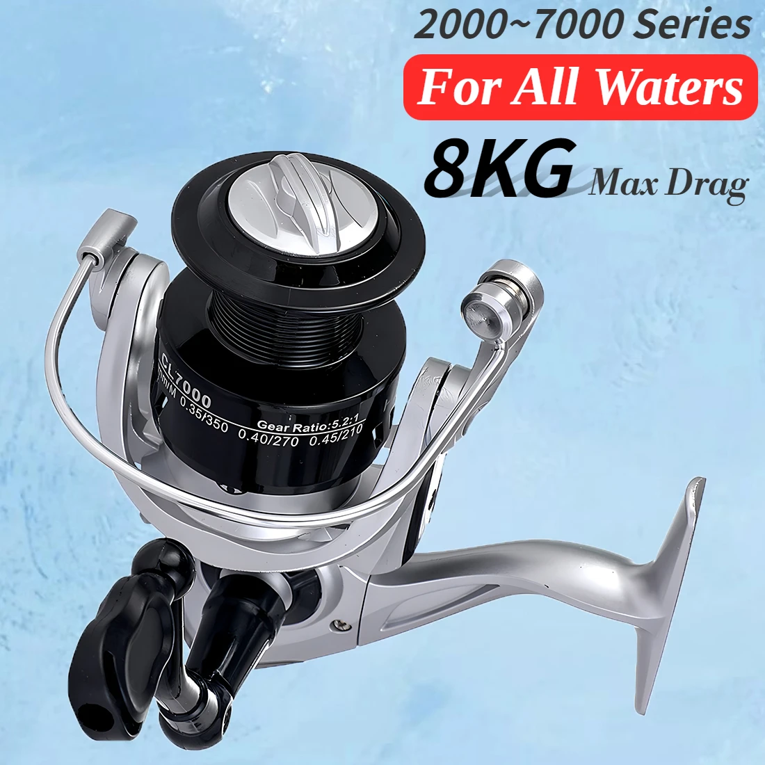 Carrete de pesca giratorio GHOTDA, Serie 2000-7000, mango intercambiable izquierdo/derecho, rueda giratoria, aparejos de pesca de carpa, arrastre máximo 8 KG