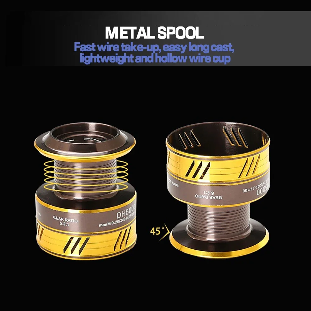 ﹥Eje principal de acero inoxidable de gran tamaño y engranajes de piñón de latón de manganeso de malla de precisión más fuerte para una fundición súper suave, recuperación y larga vida útil.