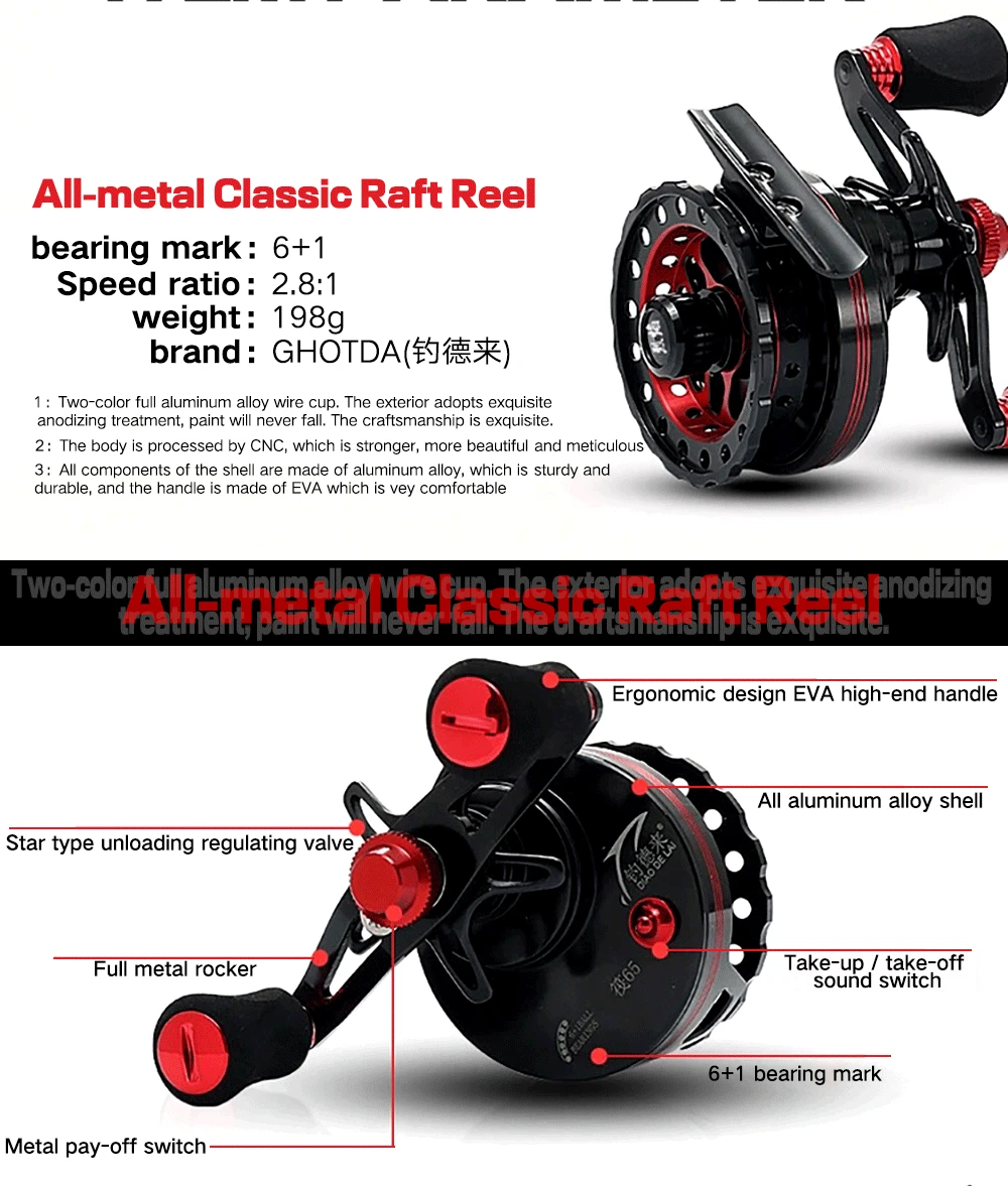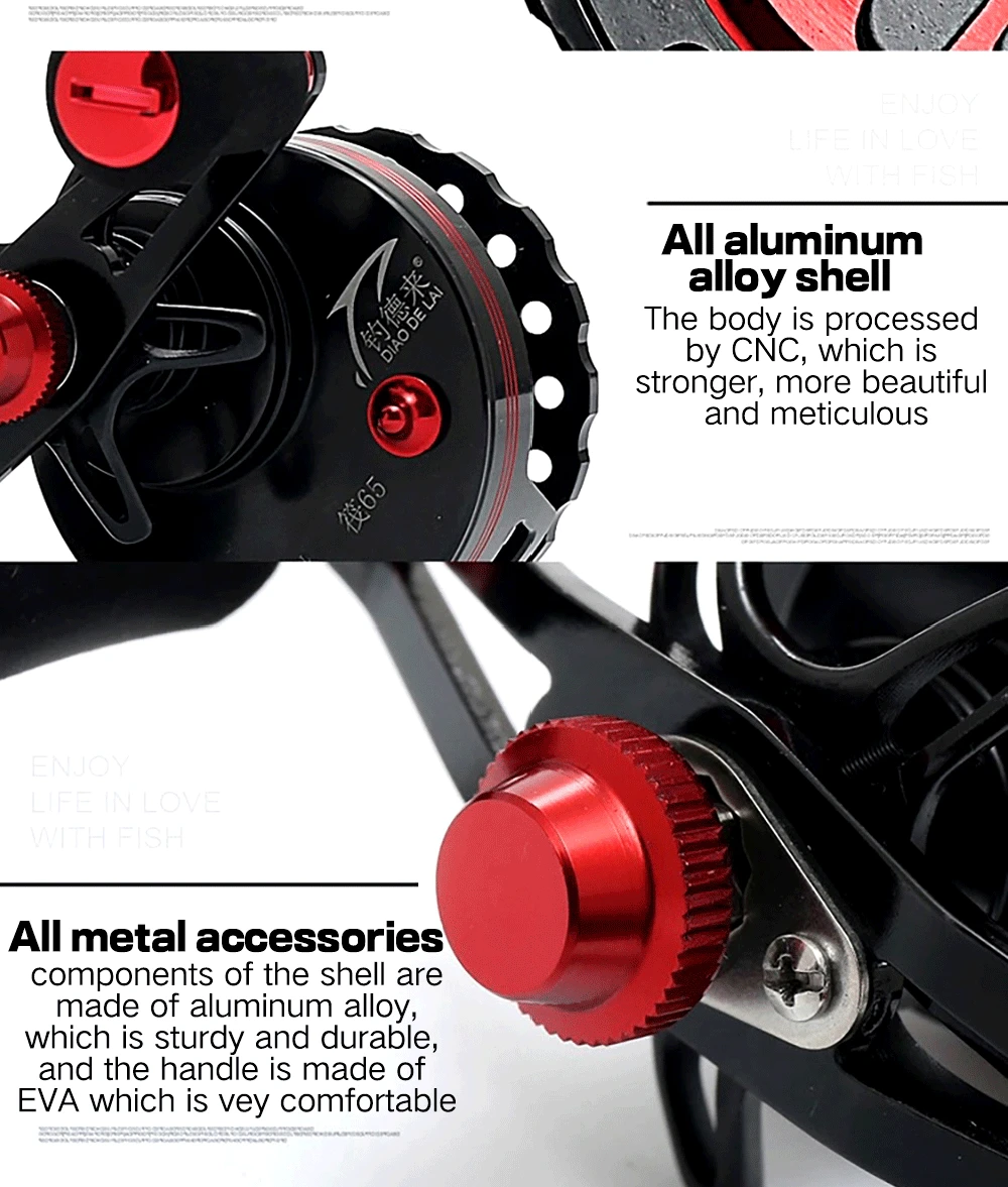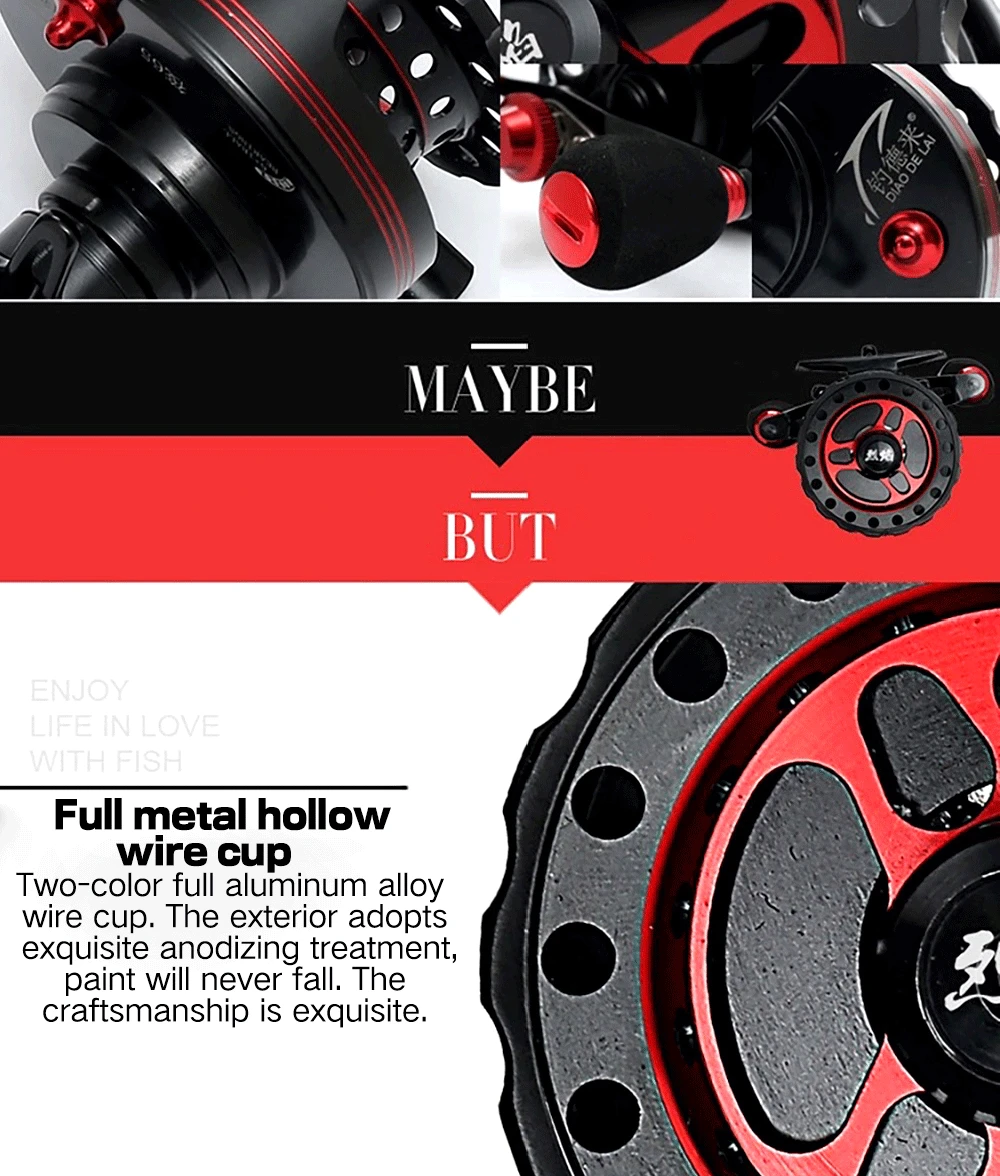 Palabras: carcasa de aleación de aluminio, todos los accesorios de metal, asiento de rueda de metal completo, taza de alambre hueco de metal completo.Paquete incluido1 carrete de pesca