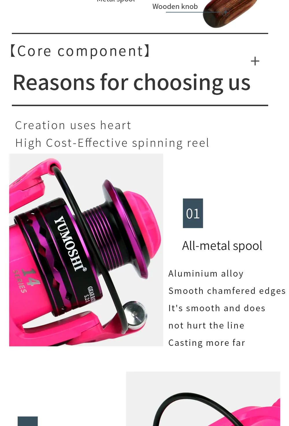 Ghotda Pink Fly Fishing Reel 2000-7000Series High Speed 5.2:1 Ratio Spinning Fishing Reel All Metal Spool Fishing Reel
