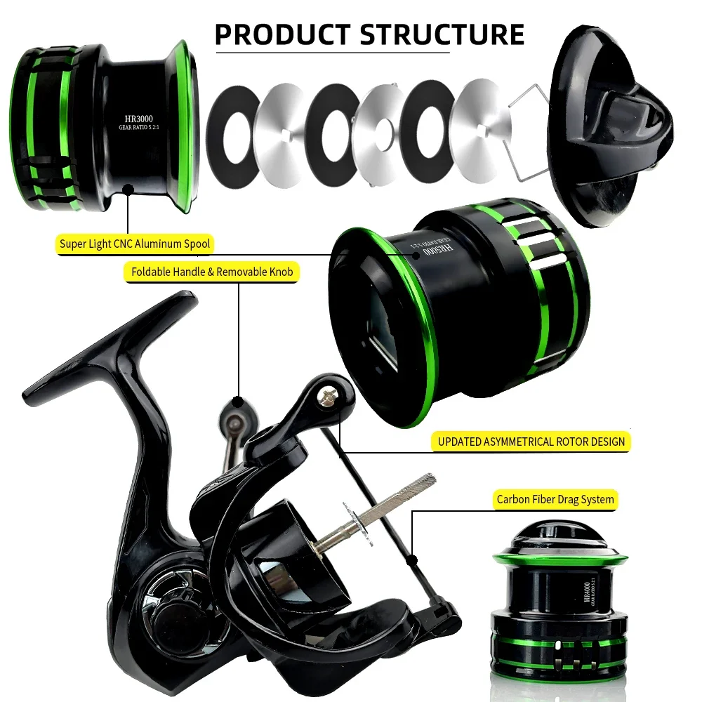 * 8-10KG potencia de arrastre de carbono. Cuerpo principal de grafito resistente, es fácil atrapar peces grandes.