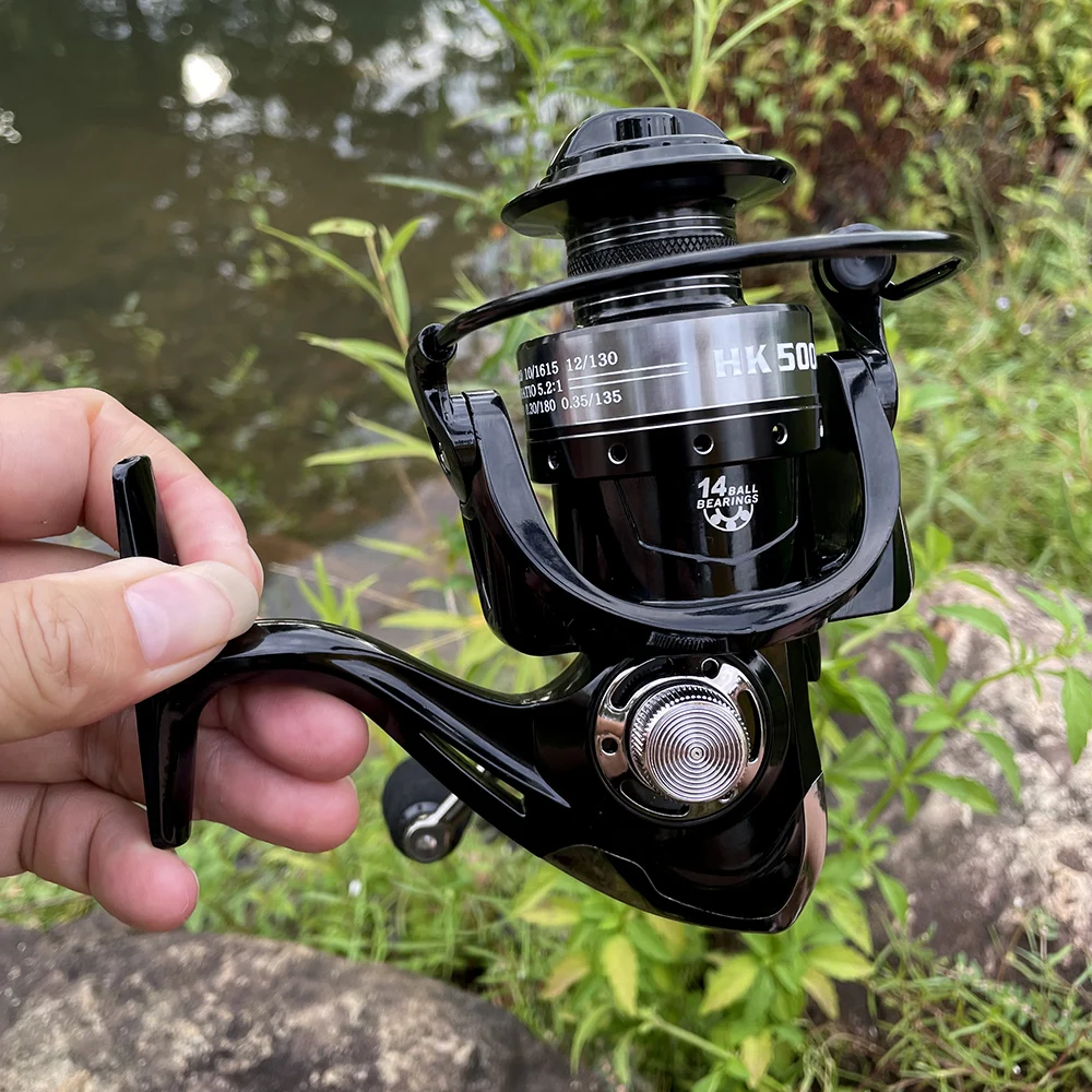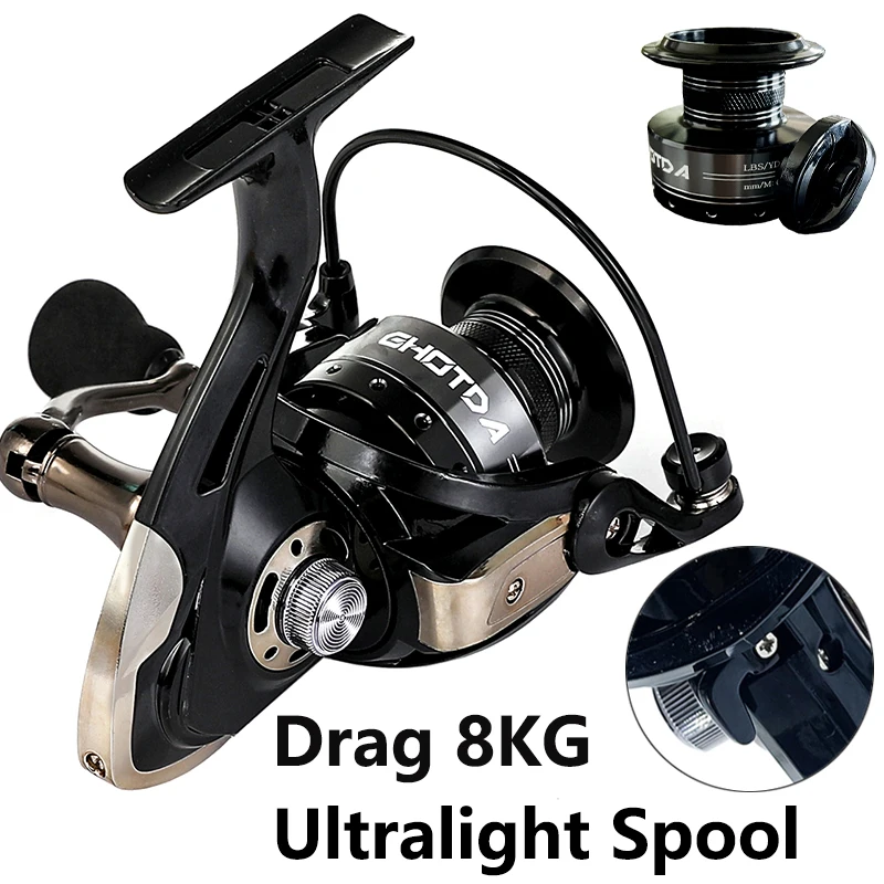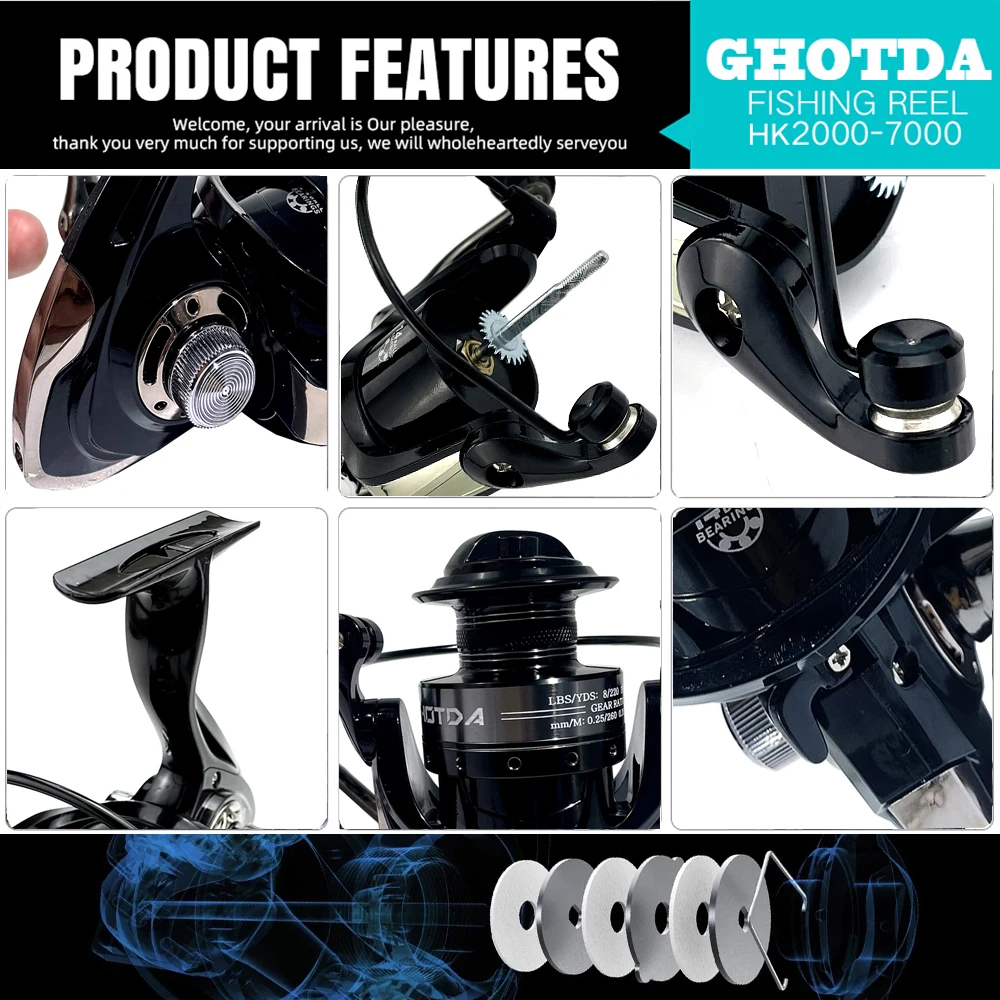 GHOTDA, carrete de pesca ligero Surfcasting 5,2: 1, copa de línea de Metal giratoria ultrasuave 2000-7000 para pesca en barco oceánico/playaINFORMACIÓN BÁSICAModelo: HKRelación de engranajes: 5,2: 1Tipo de carrete de pesca: carrete giratorio precargadoCopa de Línea: Todo metal