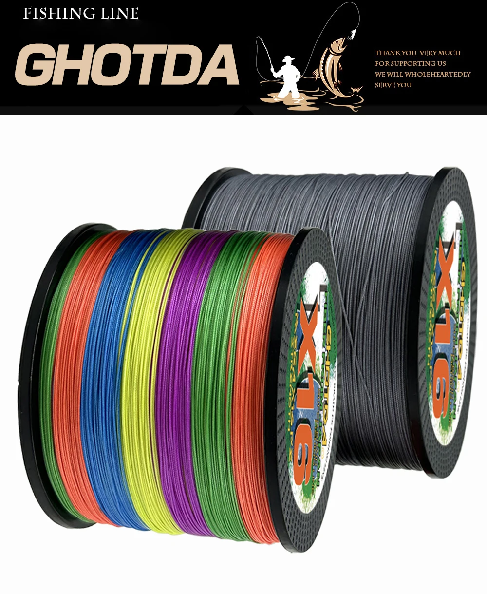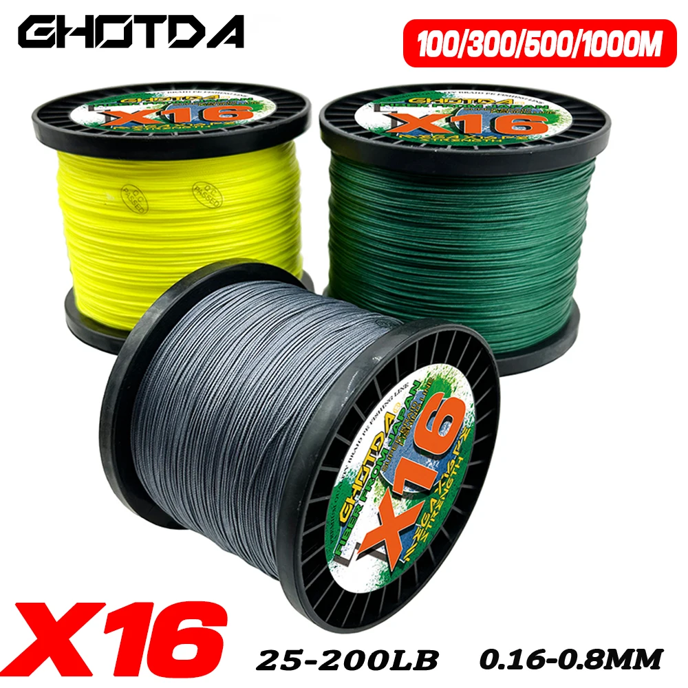 Ghotda-Hilo de pescar trenzado de 16 hebras, 100M-1000M, extremo japonés, 25LB-200LB, resistente al desgaste, tejido de alambre para pesca en Roca/señuelo