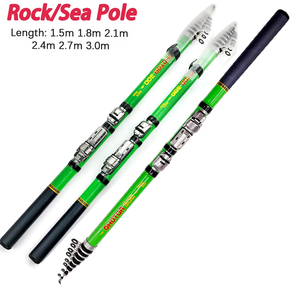 GHOTDA Mini caña de pescar en roca, caña giratoria telescópica portátil de 1,5 m-3.0 m, caña de pescar giratoria de fibra de carbono, caña de pescar alimentadora de carpa, caña de viajeInformación básica