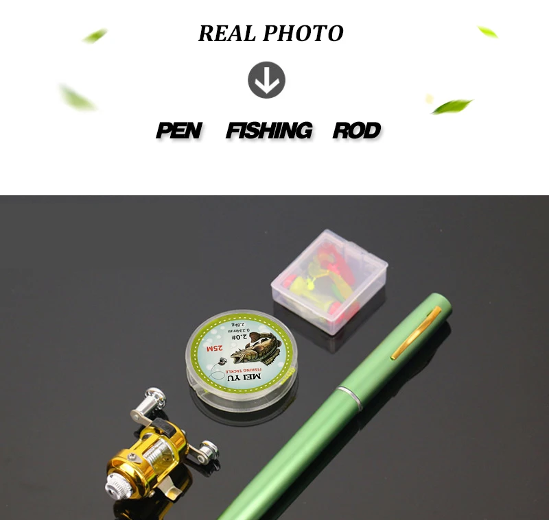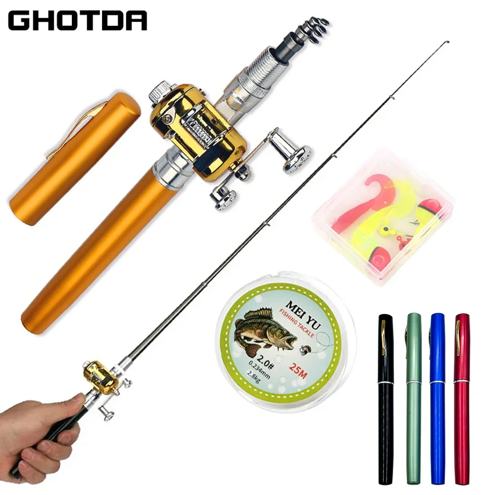 GHOTDA-Mini caña de pescar telescópica de bolsillo, portátil, con forma de bolígrafo, plegable, para río, lago, con rueda de carrete