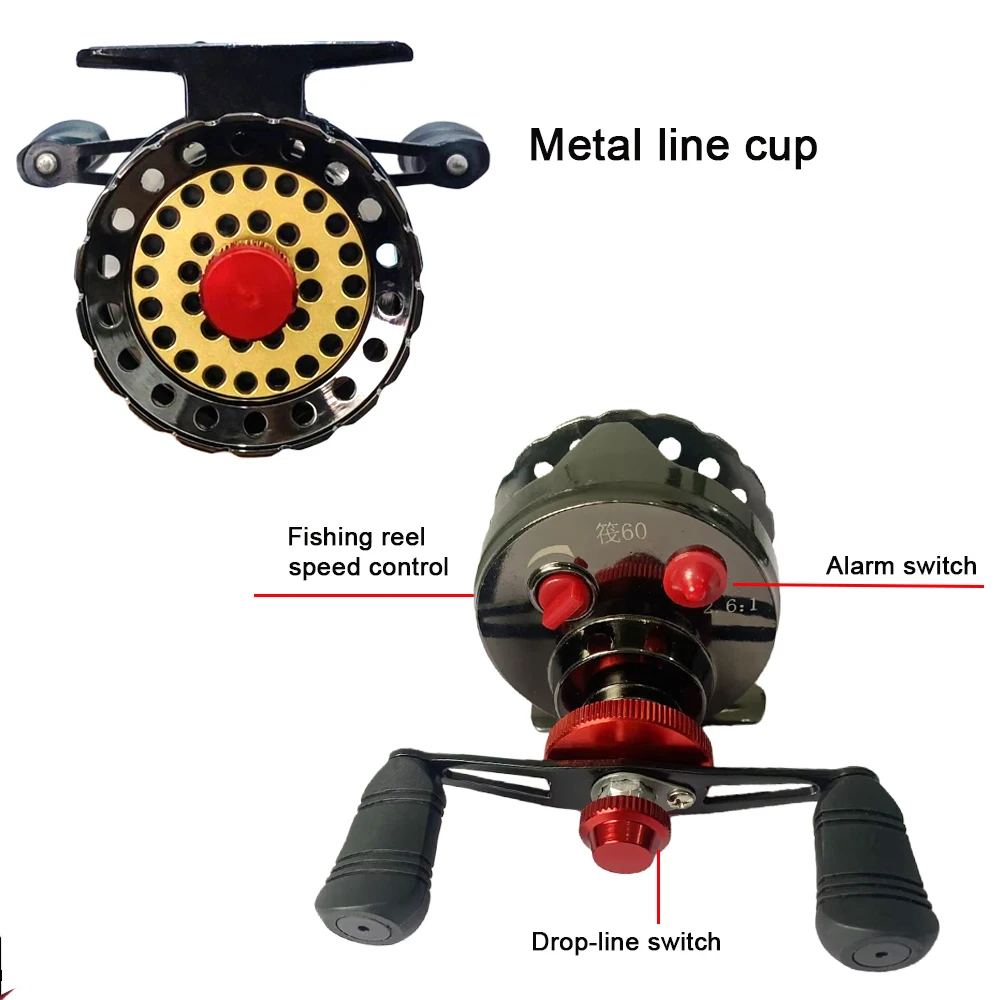 GHOTDA-carretes de pesca portátiles para Mini balsa, arrastrar máximo, 5kg, carpa, invierno, puente de mosca en hielo, pesca, accesorios de carrete de hielo de aluminio 2.6:1