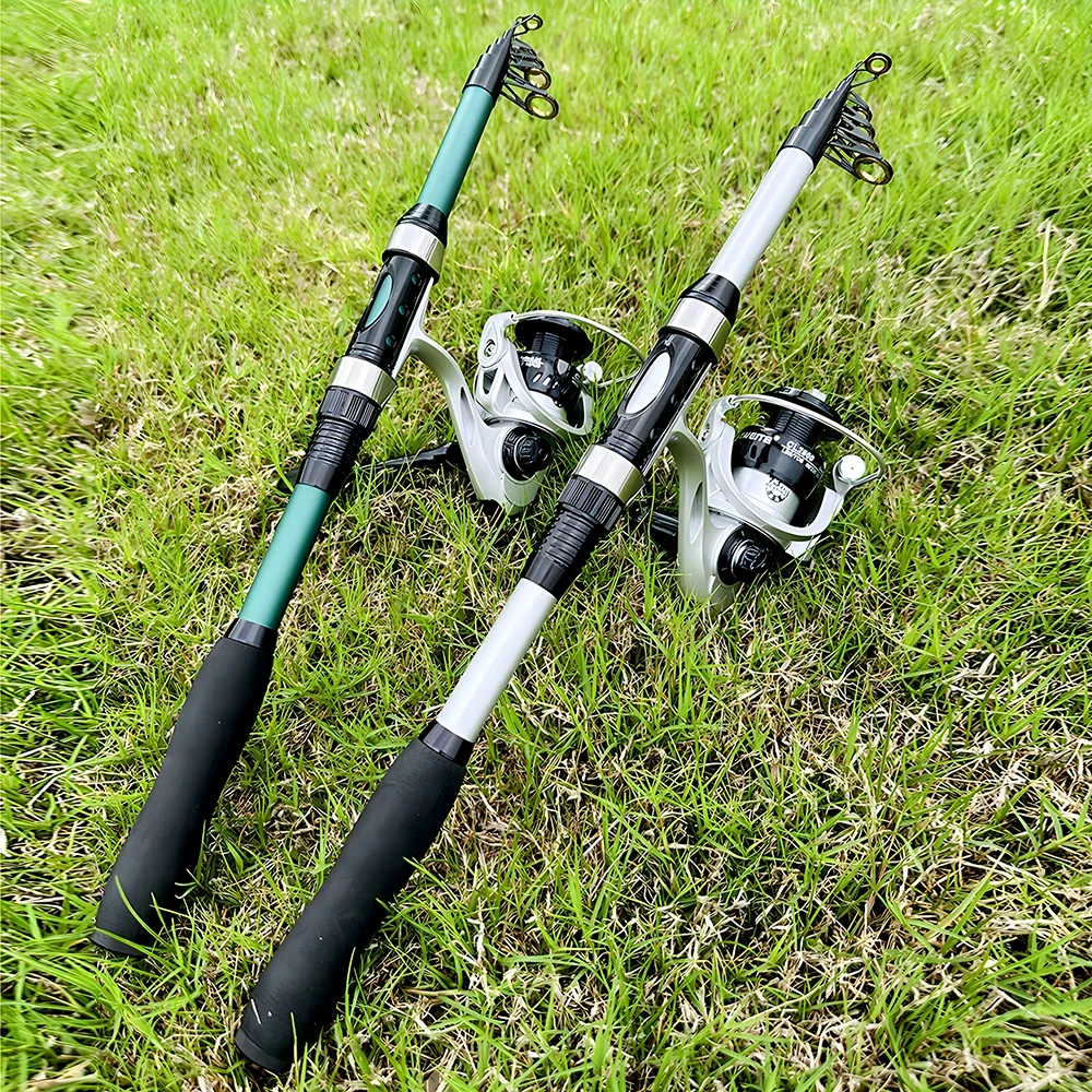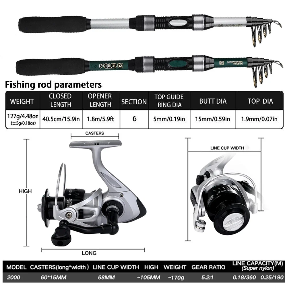 GHOTDA nueva fibra de carbono Spinning caña de pescar Combo 1,8 M poste telescópico agua salada Jigging carrete Kit señuelo W.T 5-20g Pesca para carpa