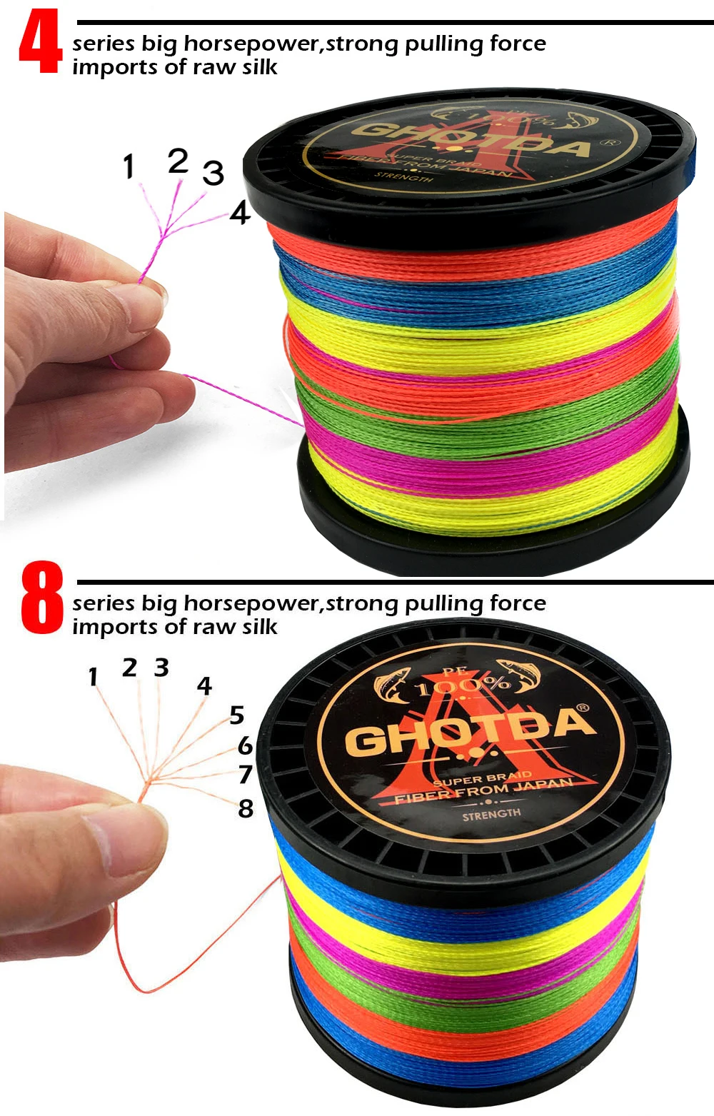 GHOTDA marca 300M 4 hebras Japón multifilamento 100% PE línea de pesca trenzada 10LB a 120LB