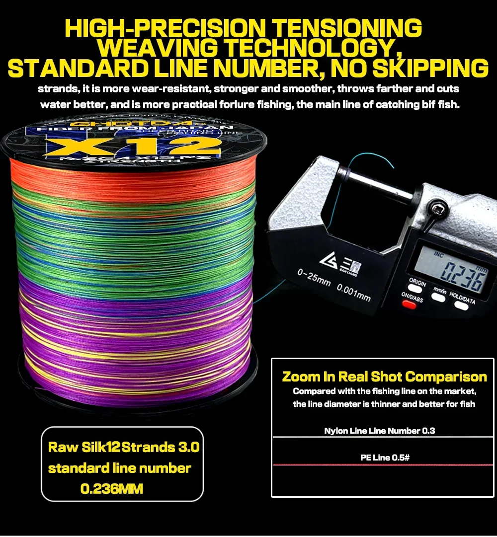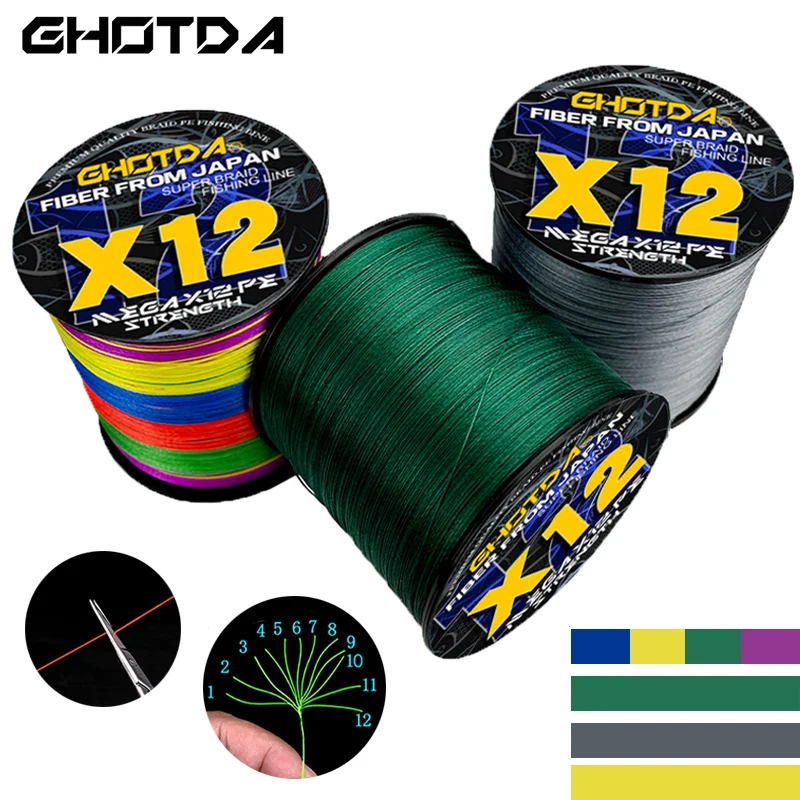 GHOTDA-sedal de pesca trenzado Original, multifilamento de 12 hebras, 100M, resistente a la abrasión, PE, superpotencia, 25-120LB, para carpa y lubina