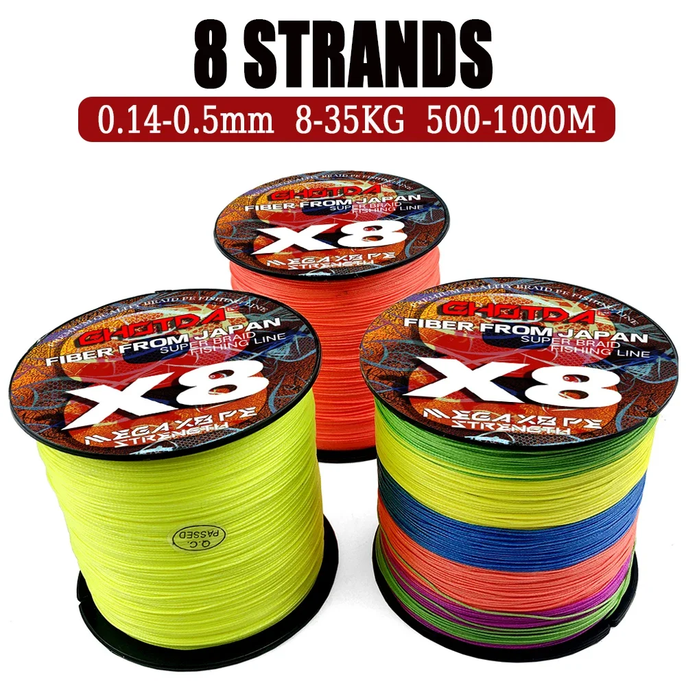 Sedales de pesca trenzados de PE fuertes de 8 hebras
