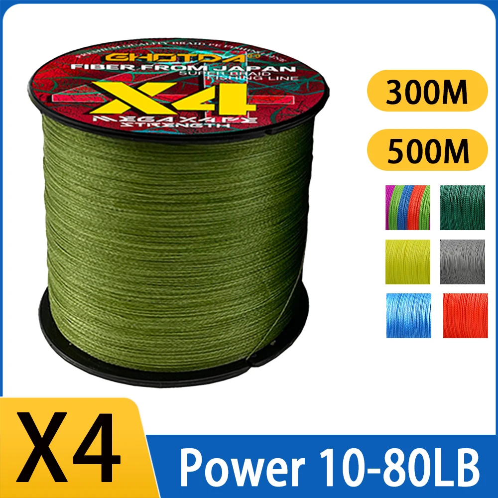 Línea de pesca trenzada de 4 hebras, alambre multifilamento súper duradero de 500M y 300M