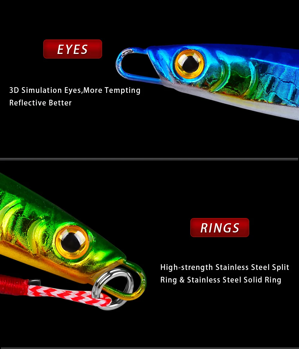 5.Forma única.La forma también ayuda a controlar la fricción mientras se sacude contra el agua.Su diseño de equilibrio central desencadena la naturaleza depredadora de los peces y es fácil de usar.