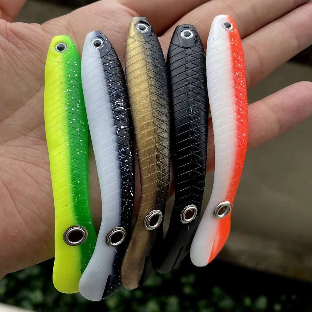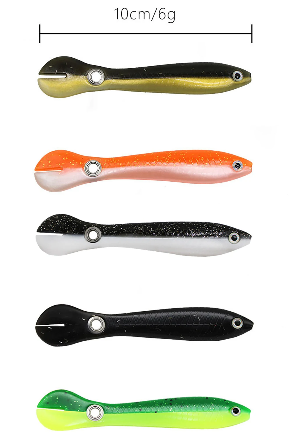 GHOTDA-señuelos artificiales blandos, cebos de pesca, sábalo de silicona, cola Wobblers, hundimiento lento, 10cm, 5 unids/lote