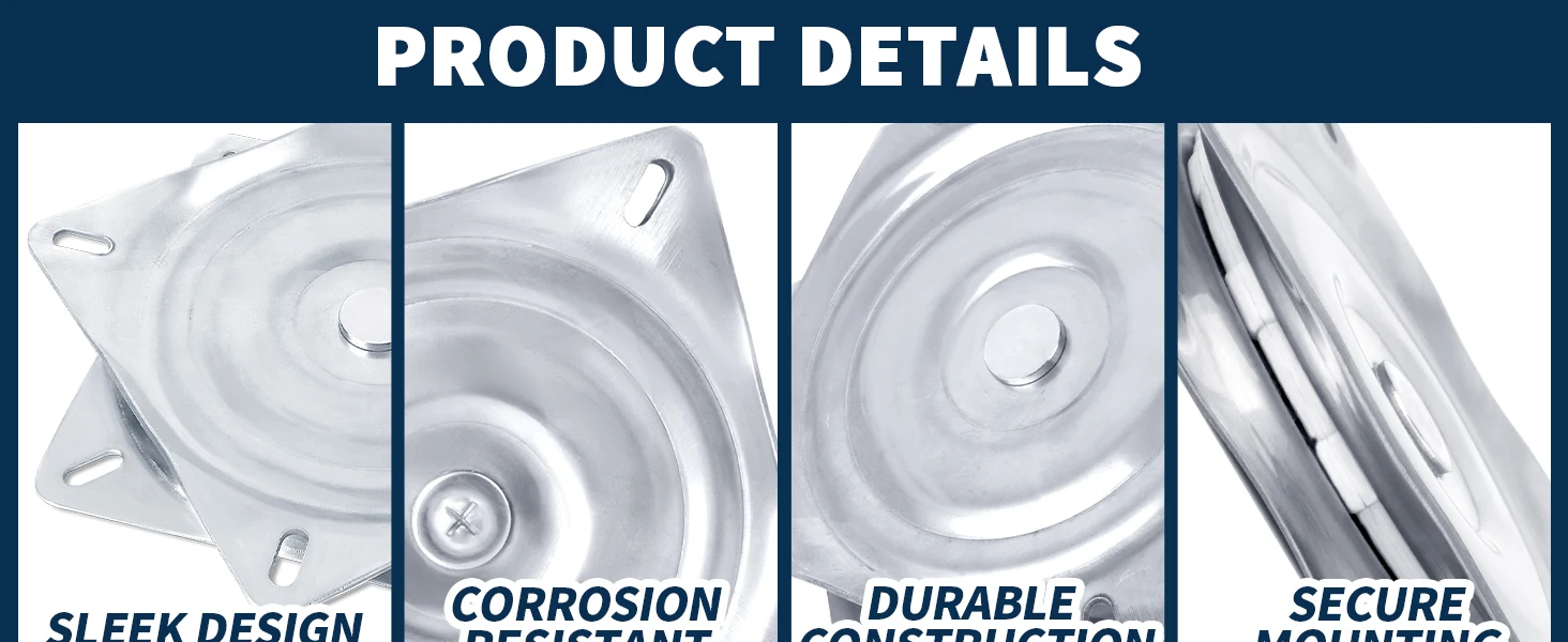 Especificaciones del producto: Dimensiones de 7,09 x 7,09 x 1,18 pulgadas, fabricado con acero inoxidable de grado 316, equipado con un avanzado mecanismo de rotación de plástico.