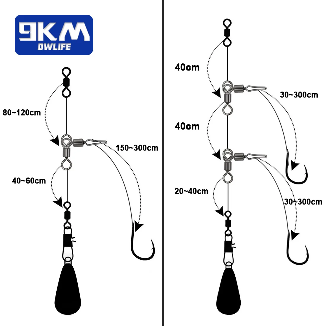 Tamaño y cantidad: Disponible en 8 tamaños, con una resistencia a la rotura de 3 kg a 37 kg. Preparamos varios tamaños, desde peces pequeños como caballa de lubina hasta peces grandes como atún.