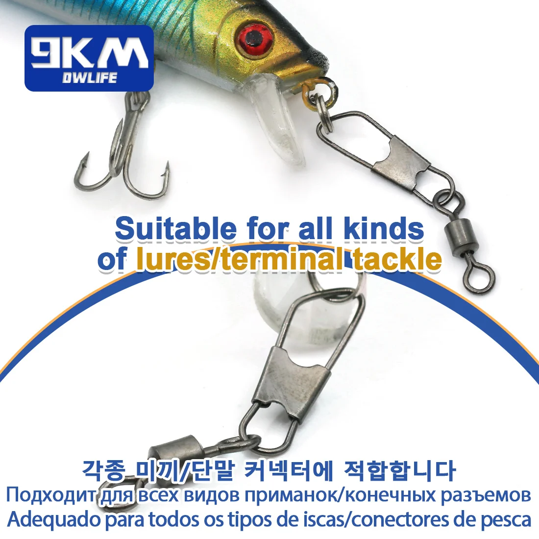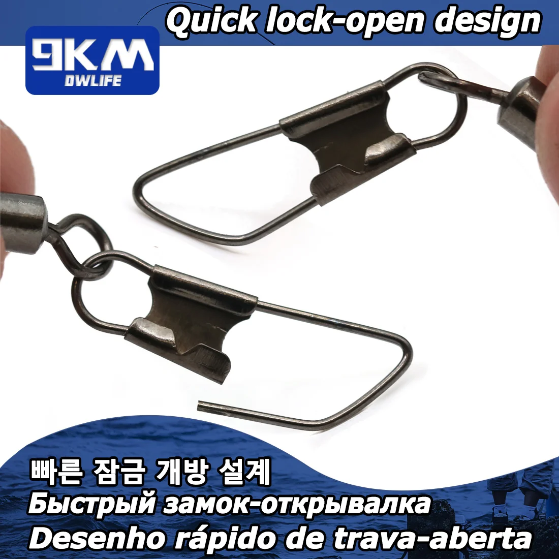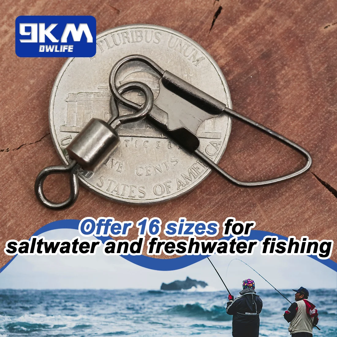 Conexión rápida: el diseño duradero y fácilmente manejable permite cambios fáciles y convenientes del aparejo terminal, los giratorios de pesca con broches ahorran tiempo y energía a los pescadores. El giro en caso de fuerza también puede ser una rotación flexible.Los broches giran suavemente y evitan que la línea se enrolle.Reduce tu trabajo de pesca.