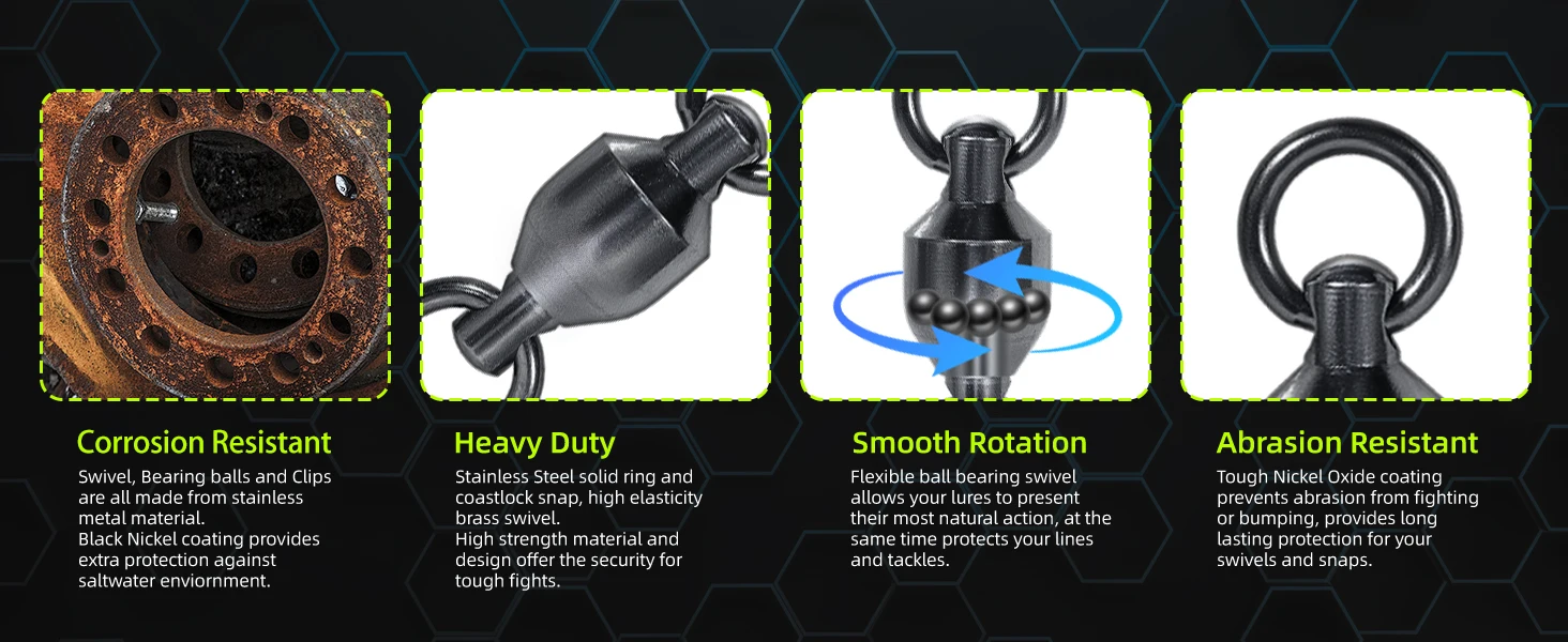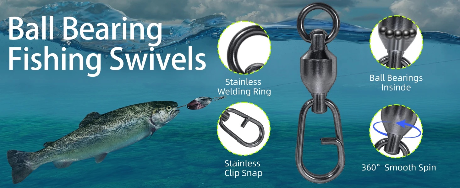 Los aparejos de pesca giratorios tienen bolas de acero inoxidable incorporadas, que pueden girar solas a alta velocidad. Eso reducirán el riesgo de que el hilo de pescar se tuerza, incluso se rompa.
