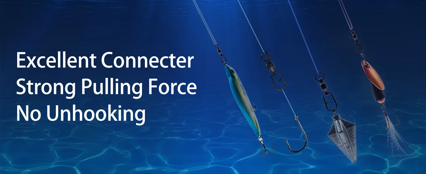 9 tamaños son adecuados para su uso no solo en agua dulce sino también en agua salada. Ideal para fijar diferentes aparejos de pesca o cambiar fácilmente líneas y señuelos de pesca.