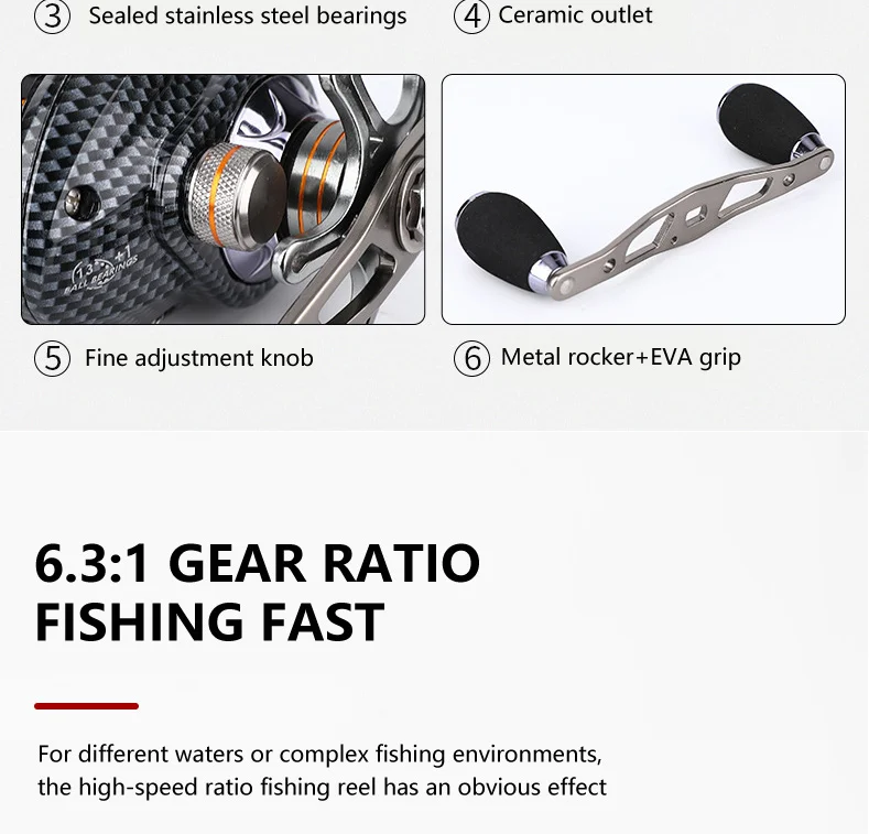 GLS 2023 carretes de Baitcasting, arrastre máximo de 8KG, 6,3: 1, freno magnético para mano izquierda/derecha, carrete de pesca de agua dulce y salada