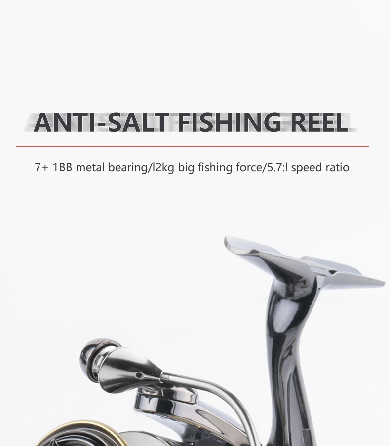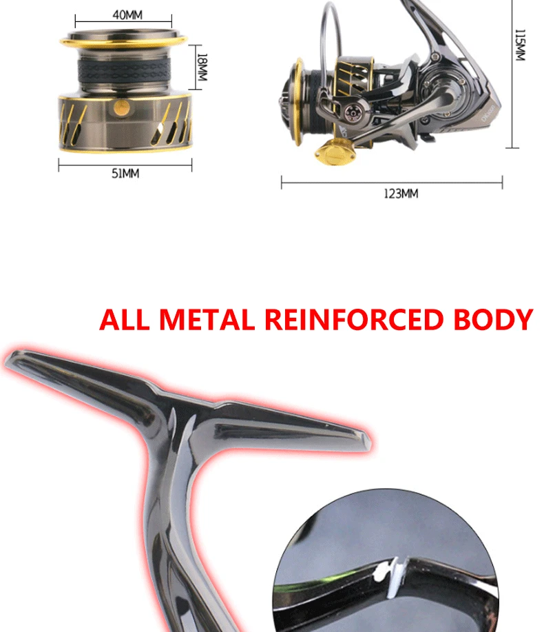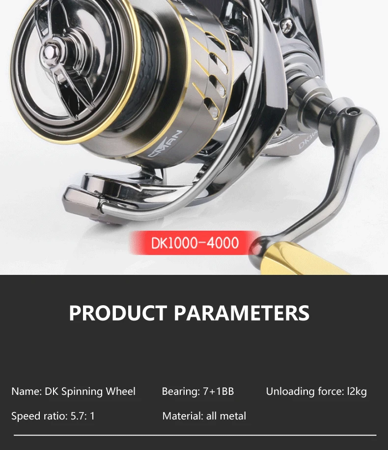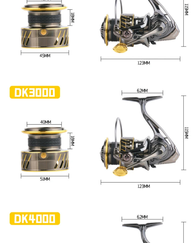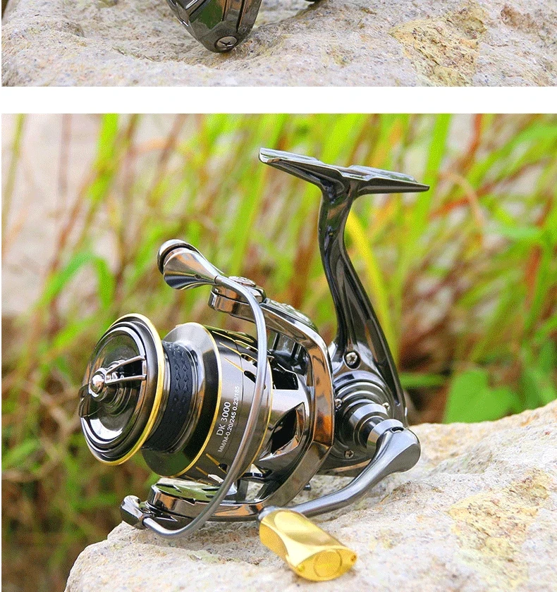GLS All metal serie DK-carrete de pesca giratorio potente, rueda de pesca de arrastre de 12kg máximo, mano izquierda/derecha, 5,7: 1