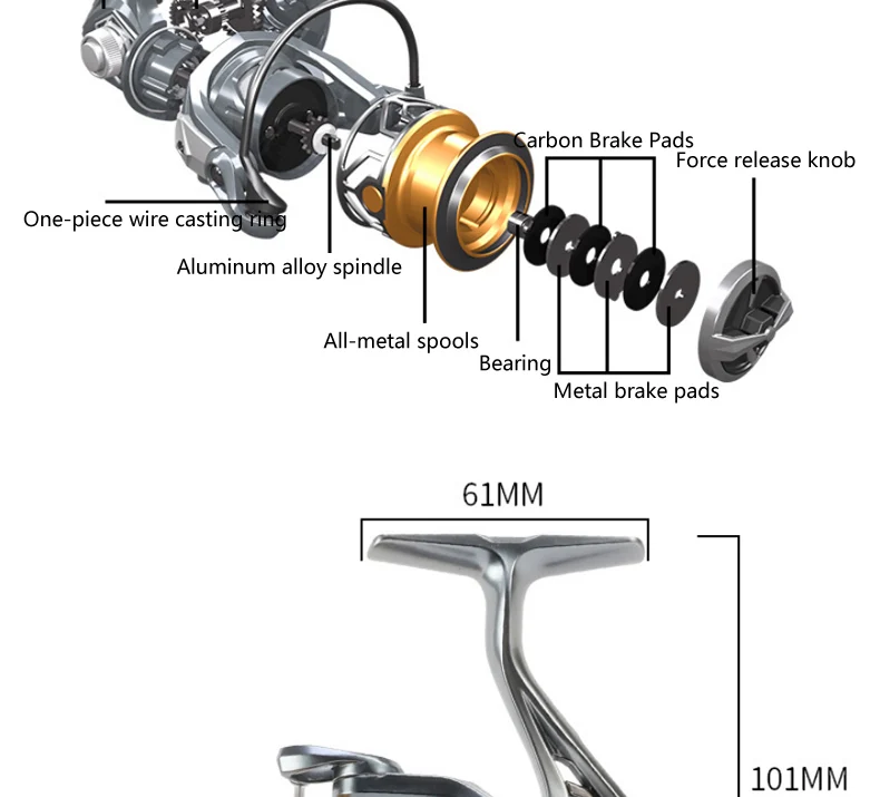 GLS-carrete giratorio de fibra de carbono para pesca, accesorio supersuave para agua salada y agua dulce, 7 + 1BB, de largo alcance, de Metal completo, serie 2500