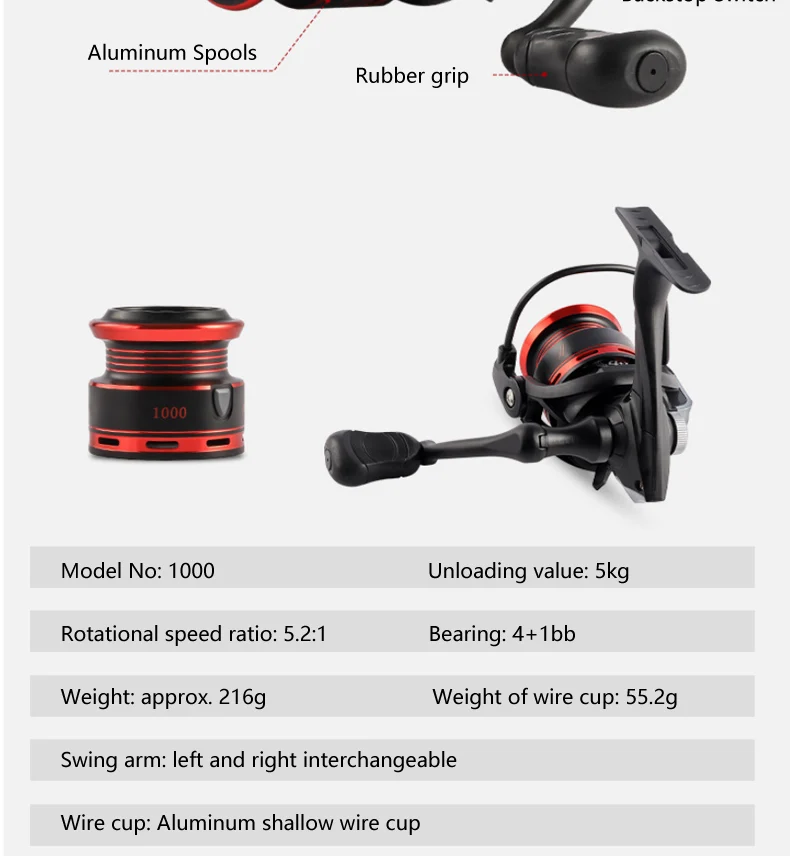 GLS-carrete de pesca duradero, rueda giratoria ultraligera de 5kg, 5,2: 1, para agua salada y agua dulce