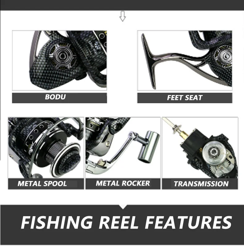 GLS-carrete de pesca giratorio de BA1000-7000, relación de engranaje 5,5: 1, de aluminio, para carpa