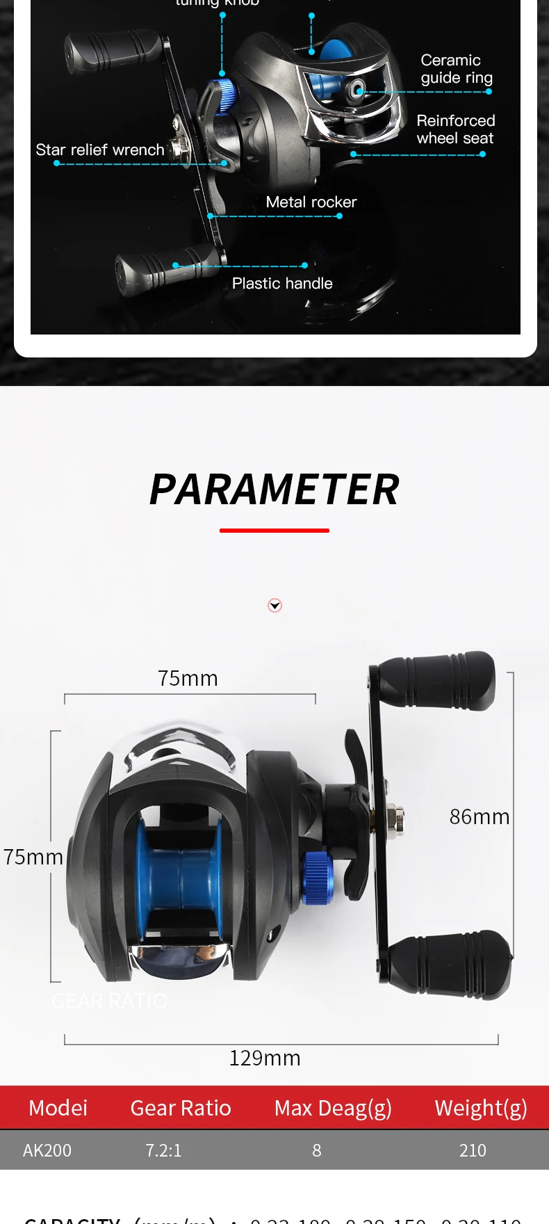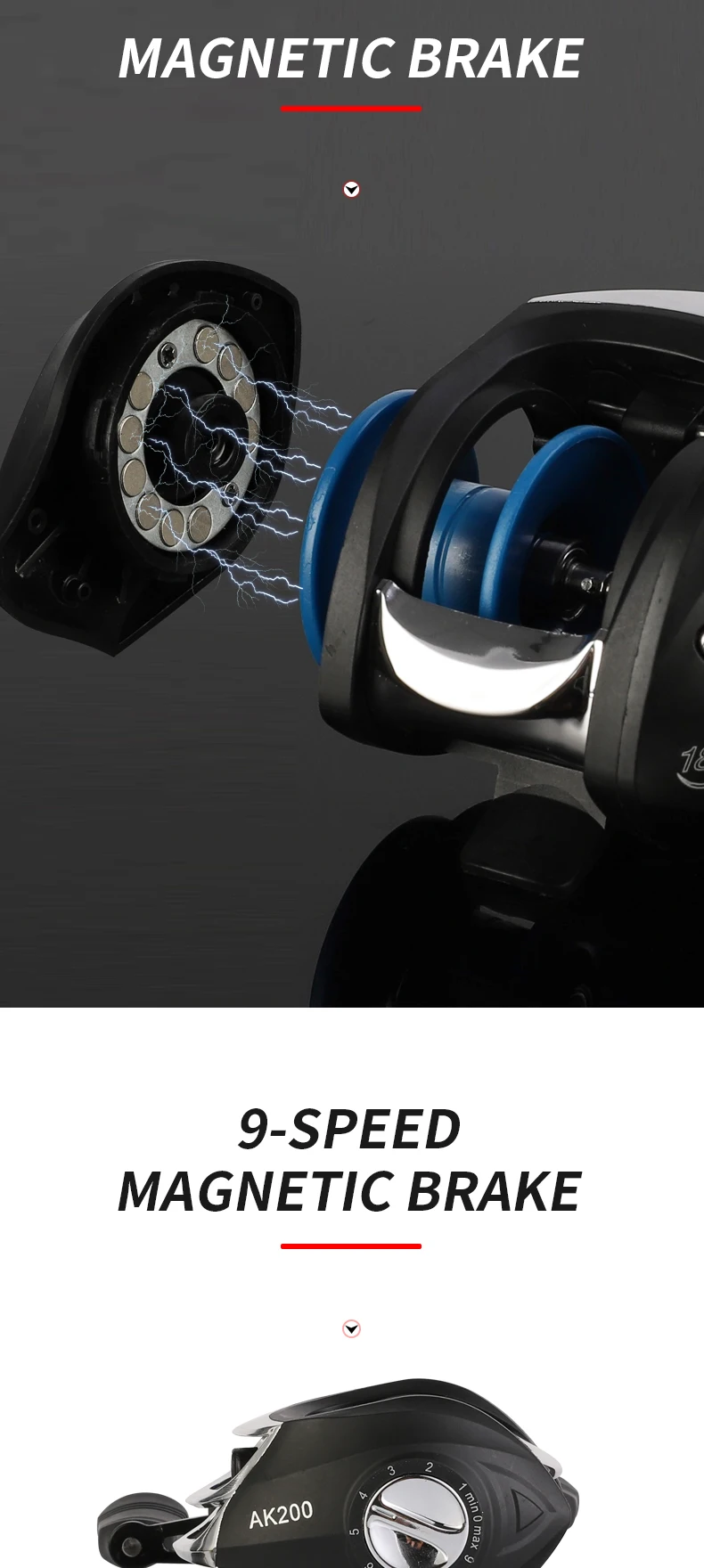 GLS-carrete de plástico rojo/azul 2024: 1, sistema de freno magnético de arrastre máximo, carrete de fundición de rueda de pesca, 8kg, invierno, 7,2